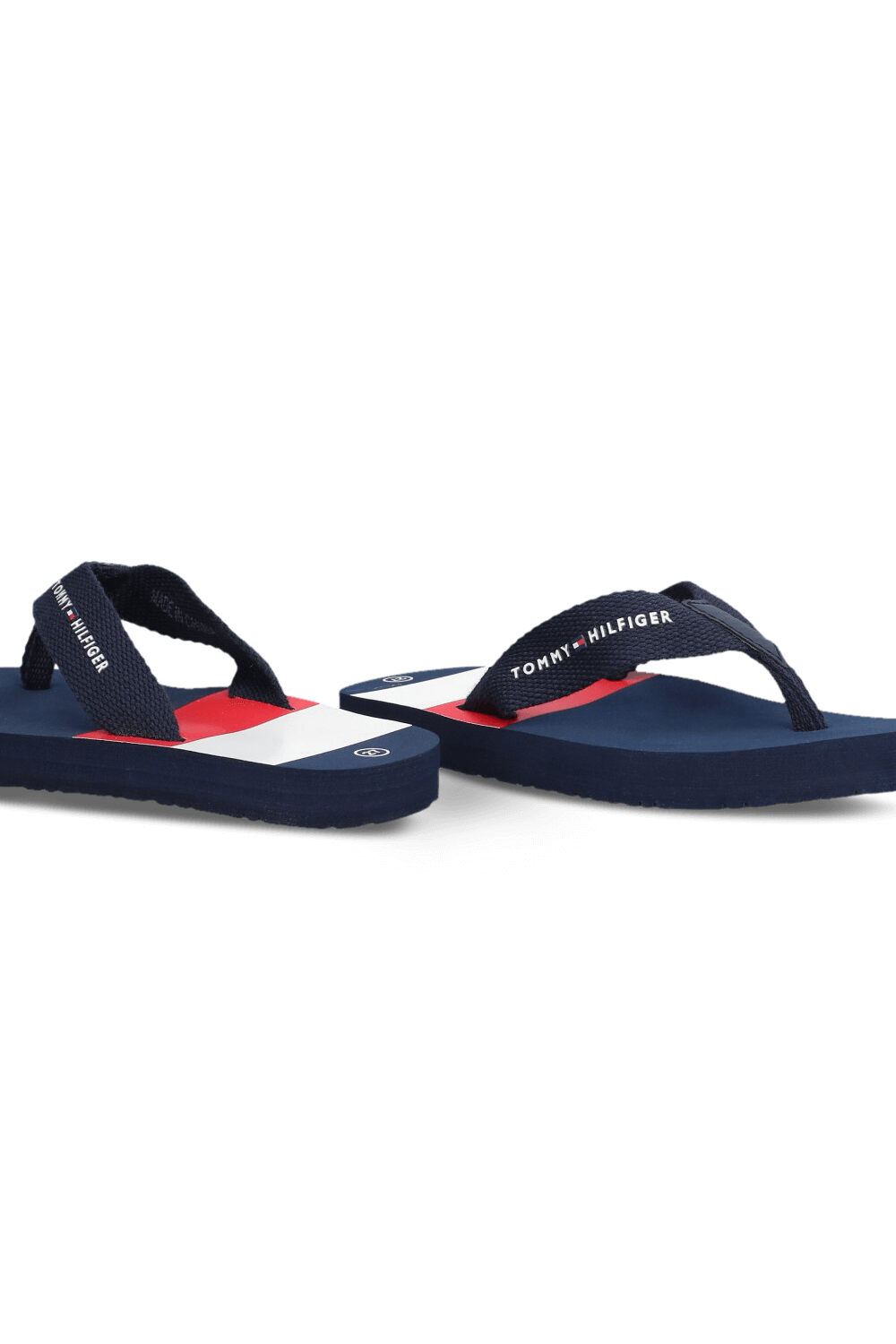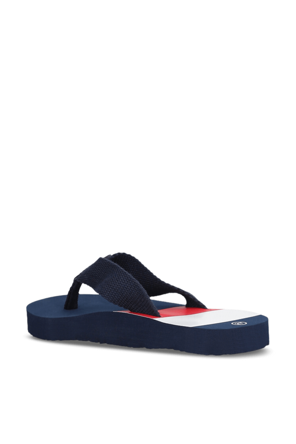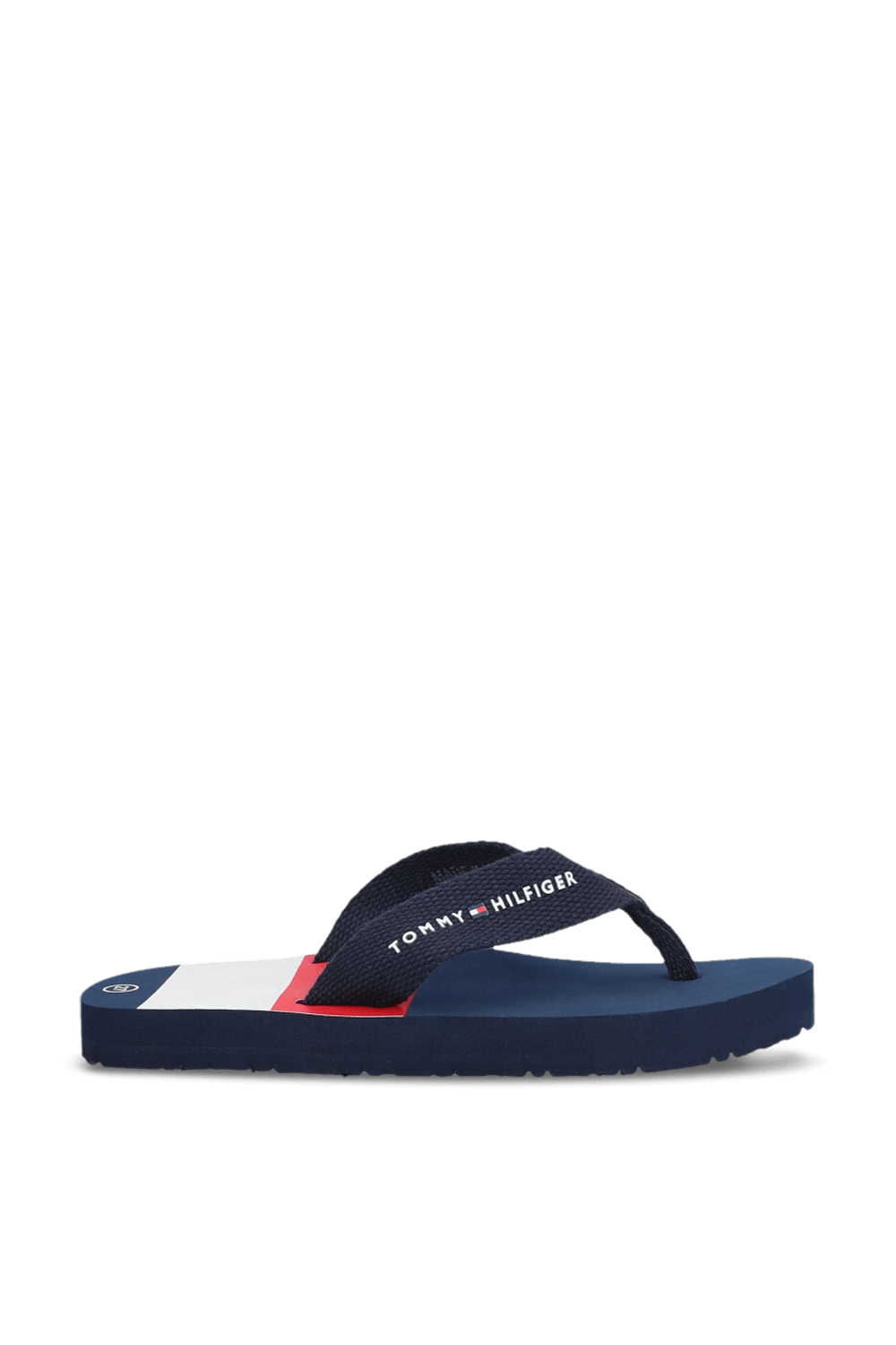 כפכפי אצבע מבית Tommy Hilfiger, עשויים פוליאסטר בצבעי המותג האייקונים - כחול, לבן ואדום.