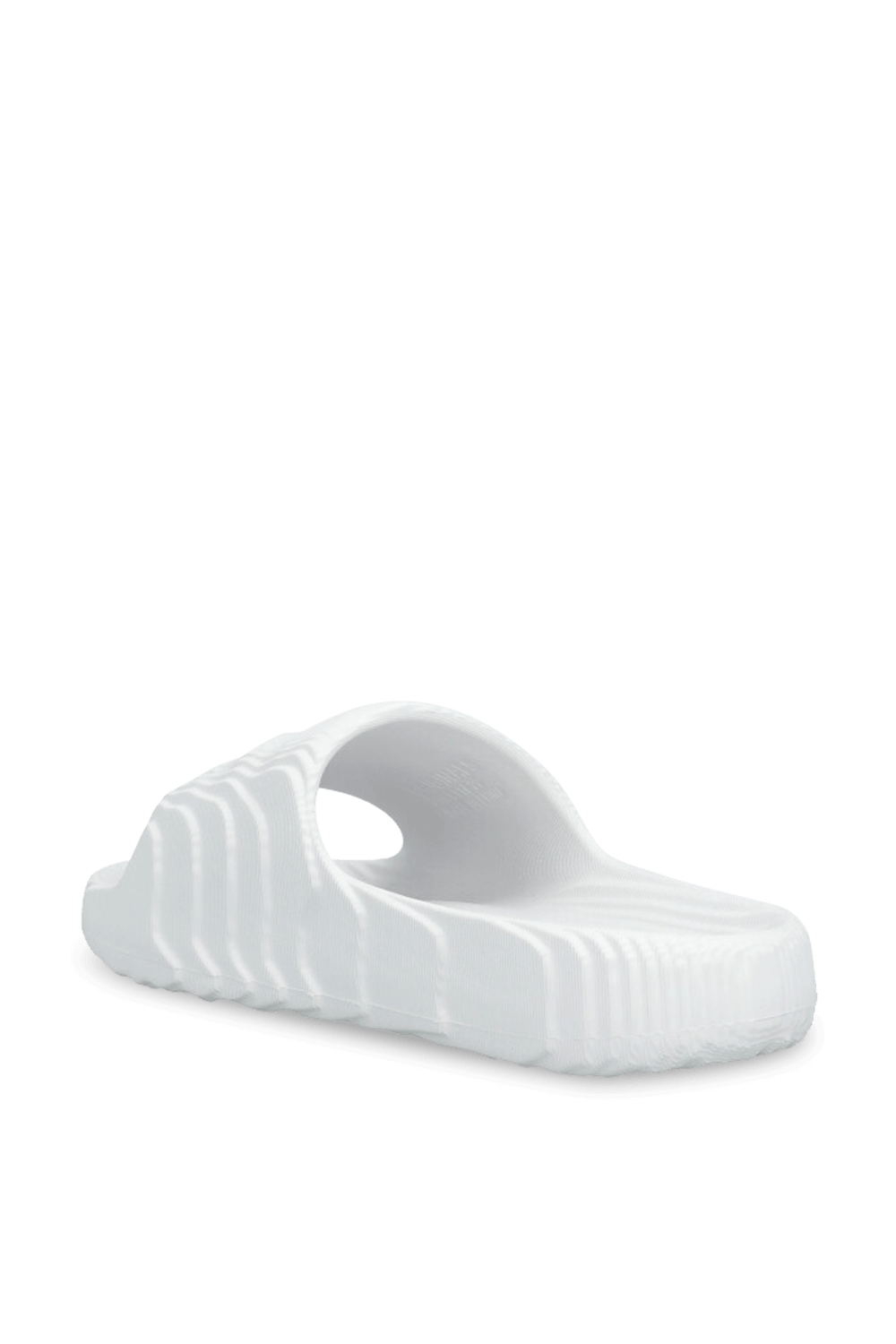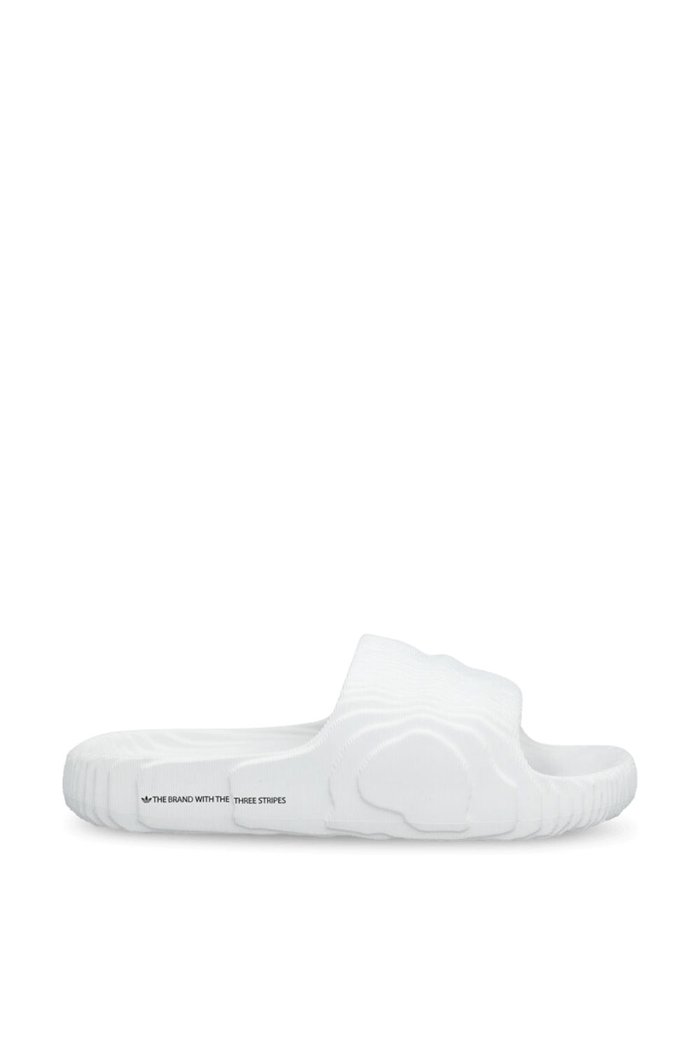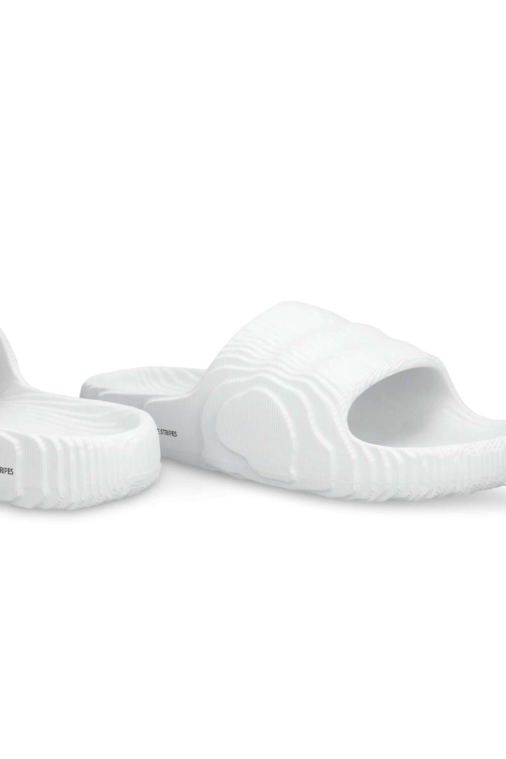 כפכפי סליידס מדגם Adilette מבית Adidas, עשויים תערובת כותנה אורגנית וטקסטיל בעיצוב מחוספס.