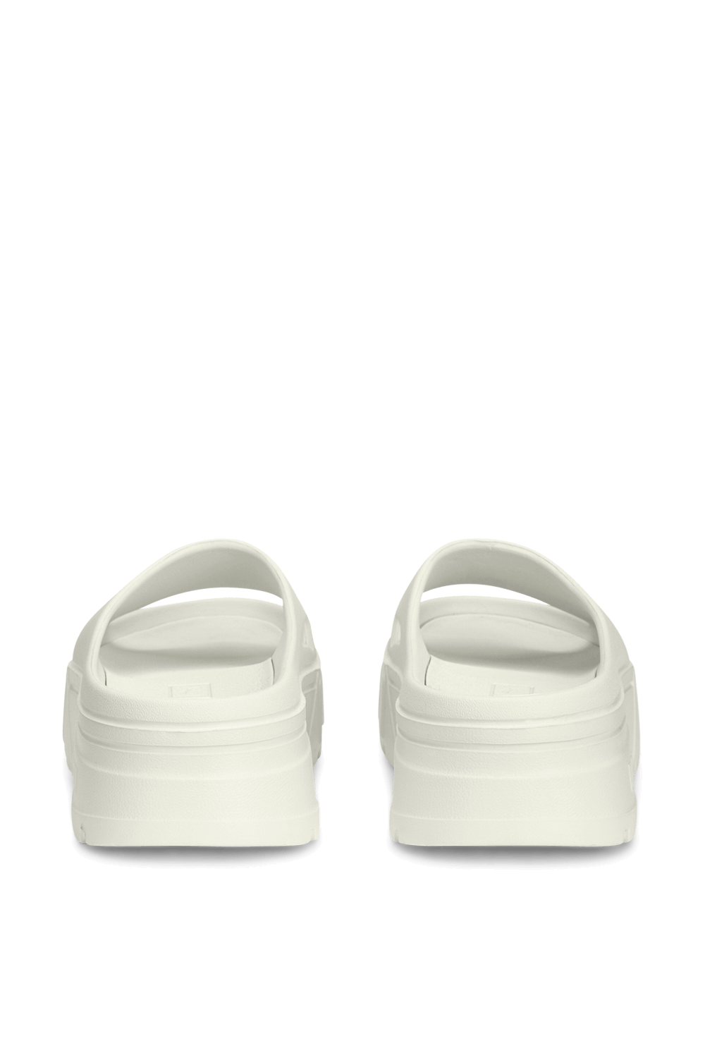 כפכפי סליידס Mayze Stack מבית Puma, עשויים EVA בצבע לבן עם סוליית פלטפורמה ורצועה אחת שיתאימו בדיוק לקיץ.