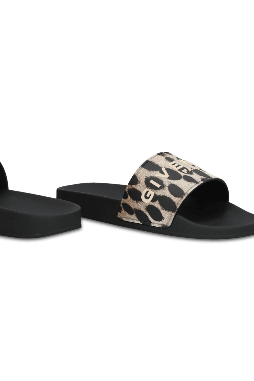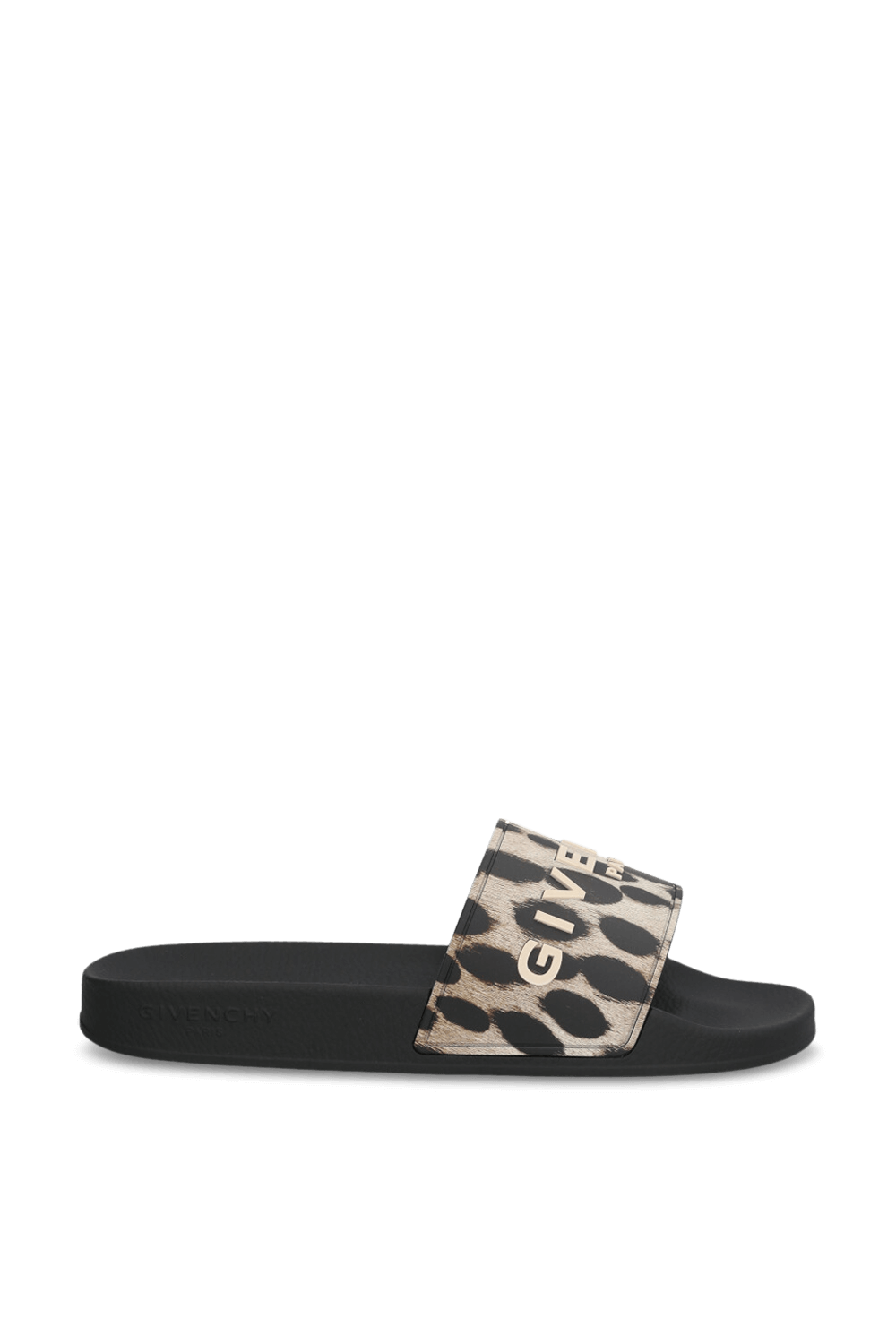 כפכפי סליידס מבית Givenchy, תוצרת איטליה, עשויים פוליאוריתן בצבע שחור ובדוגמת חברבורות עם הטבעת לוגו.