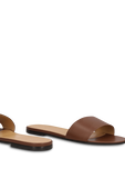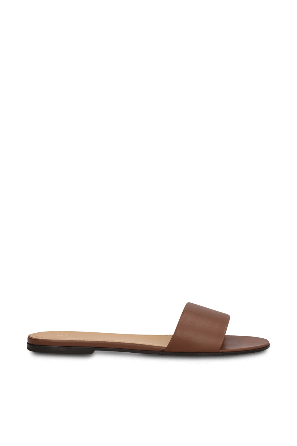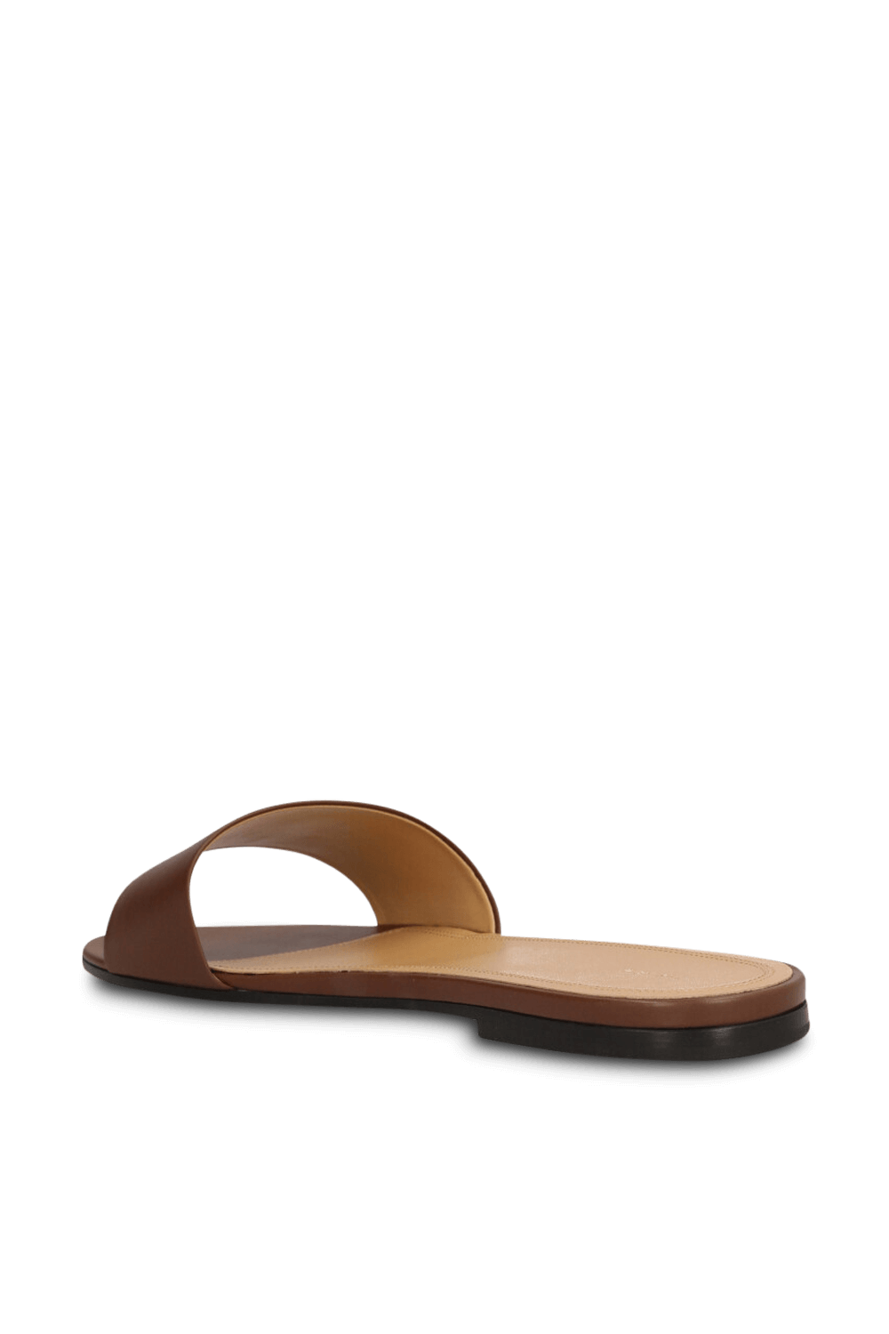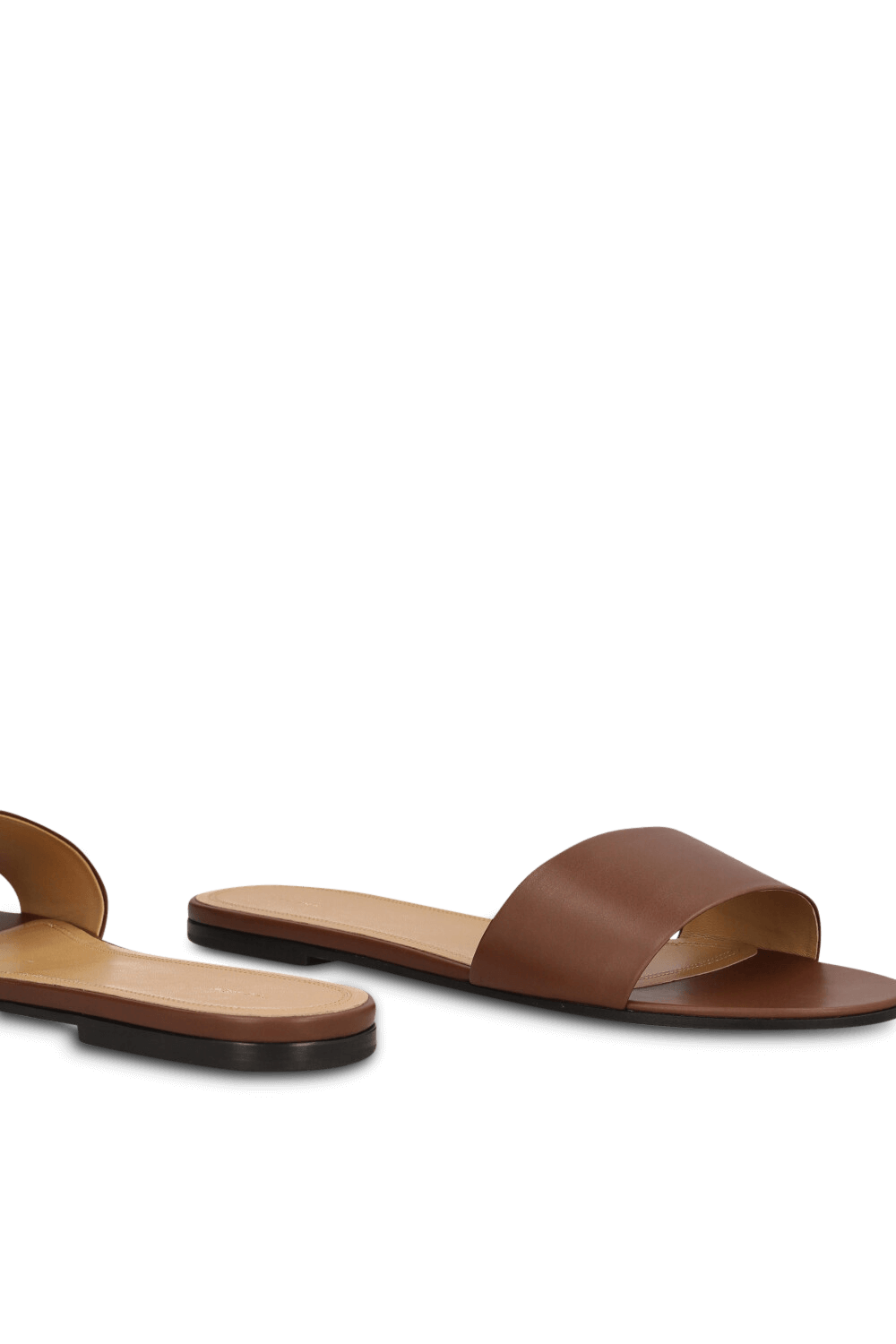 כפכפי סליידס במראה מינימליסטי מבית The Row, עשויים עור בצבע חום.