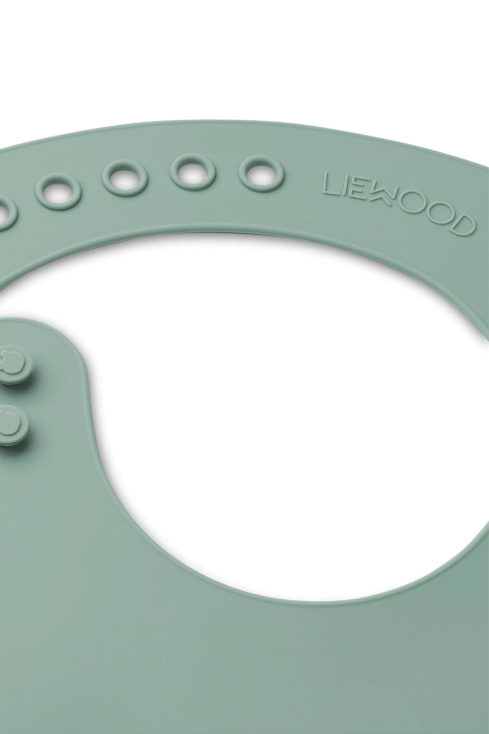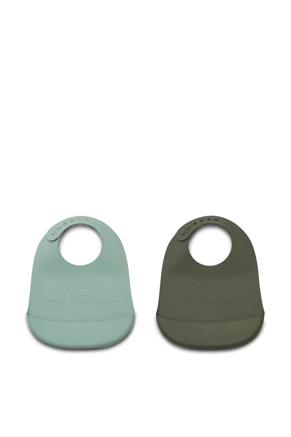 מארז שני סינרים מבית Liewood. זהו דגם טילדה העשוי סיליקון איכותי בגווני ירוק שונים. לפריט סגירה אחורית ללבישה נוחה ושוליים מקופלים לניקיון מקסימלי בזמן הארוחה.