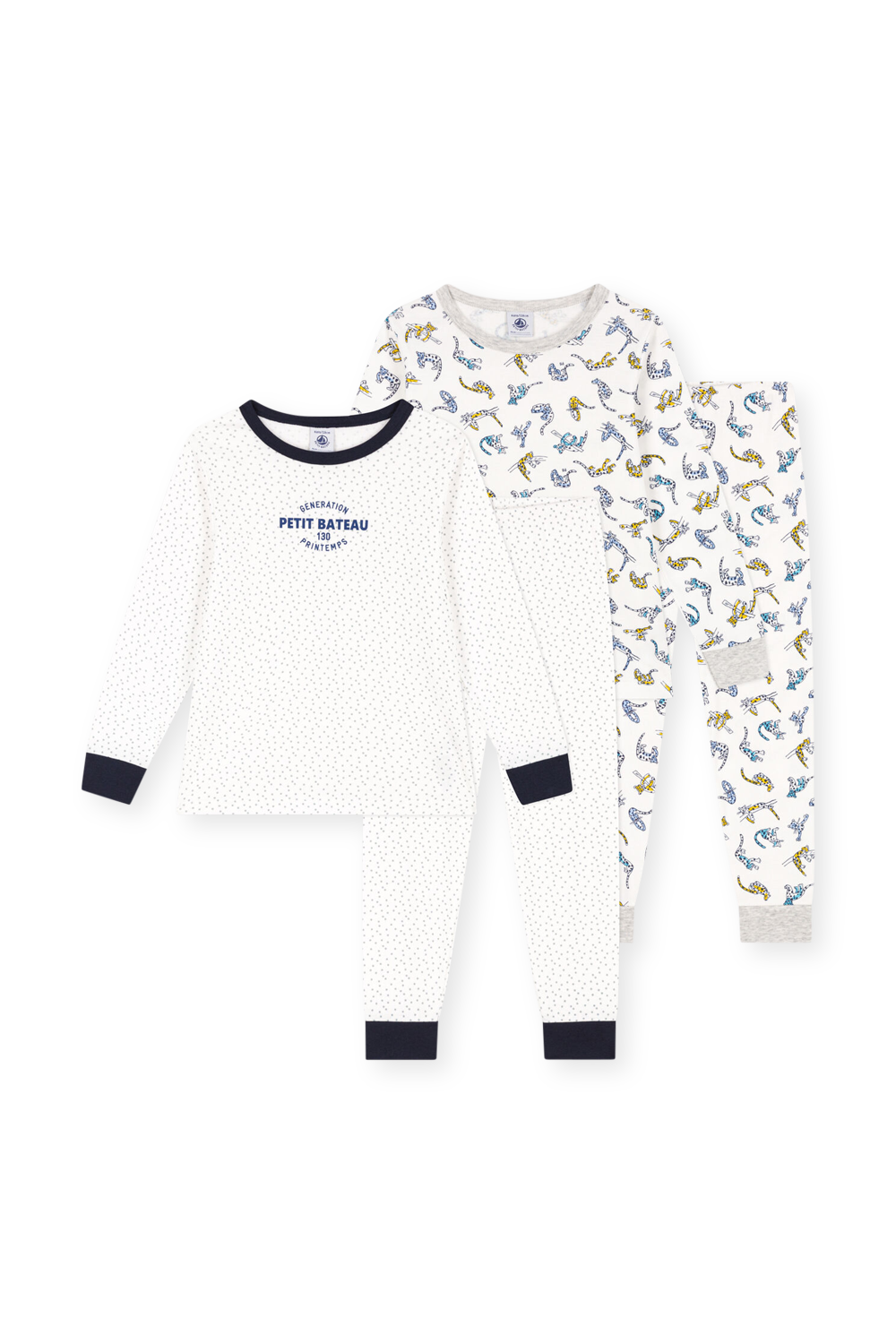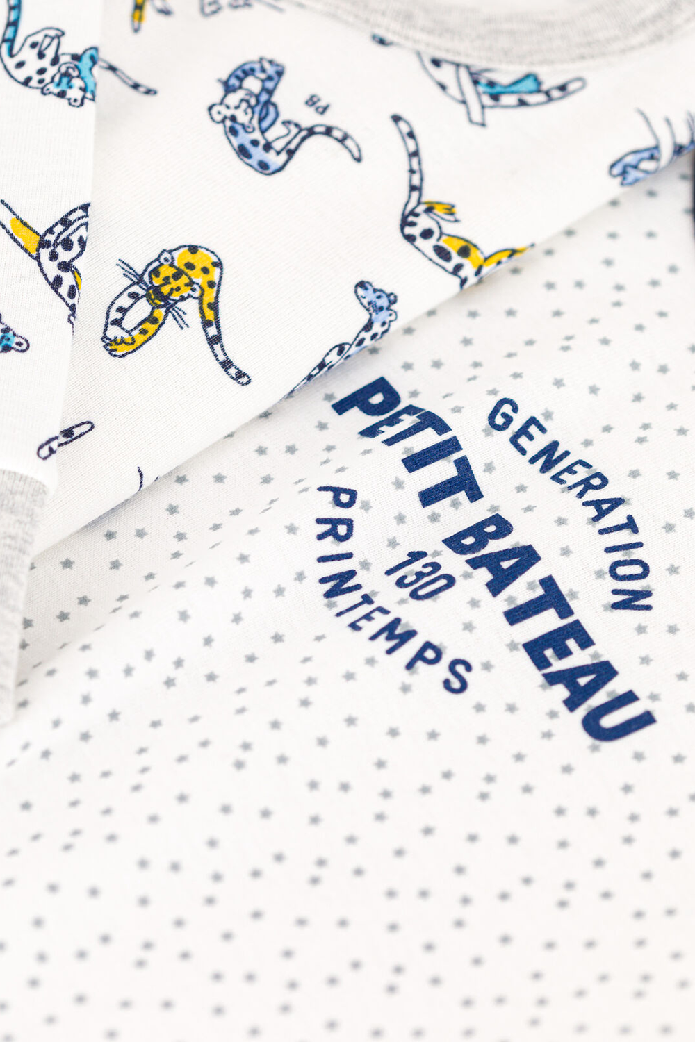 מארז זוג פיג`מות מבית Petit Bateau, עשויות כותנה בהדפס כוכבים ובהדפס נמרים.