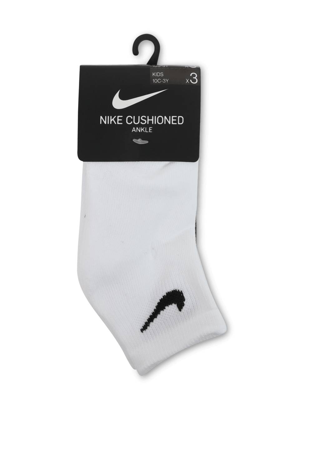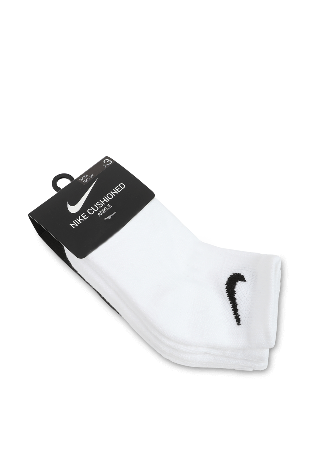 מארז הכולל שלושה זוגות גרבי קרסול של מותג הספורט Nike. הגרביים עשויים תערובת כותנה בצבעי לבן, אפור ושחור בסריגת ריב ובפיתוח טכנולוגי המקנה להם יכולת נידוף זיעה מקסימלית. הלוגו ארוג בחוט שחור על גבי חלקן העליון.