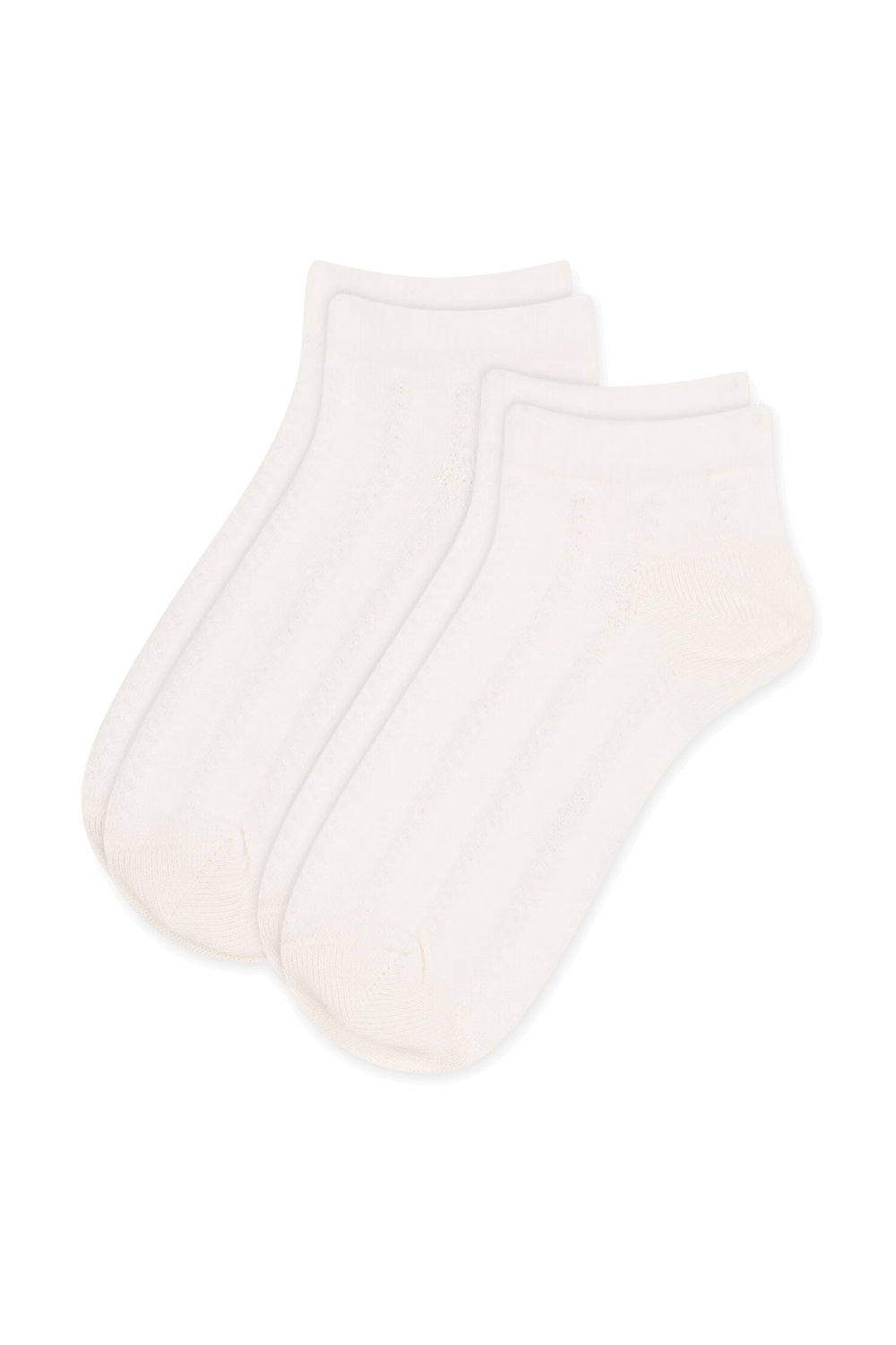 מארז שני זוגות גרביים מבית Petit Bateau, עשויים כותנת ג'רזי בצבע לבן עם עיטורים וסיומת ריב.