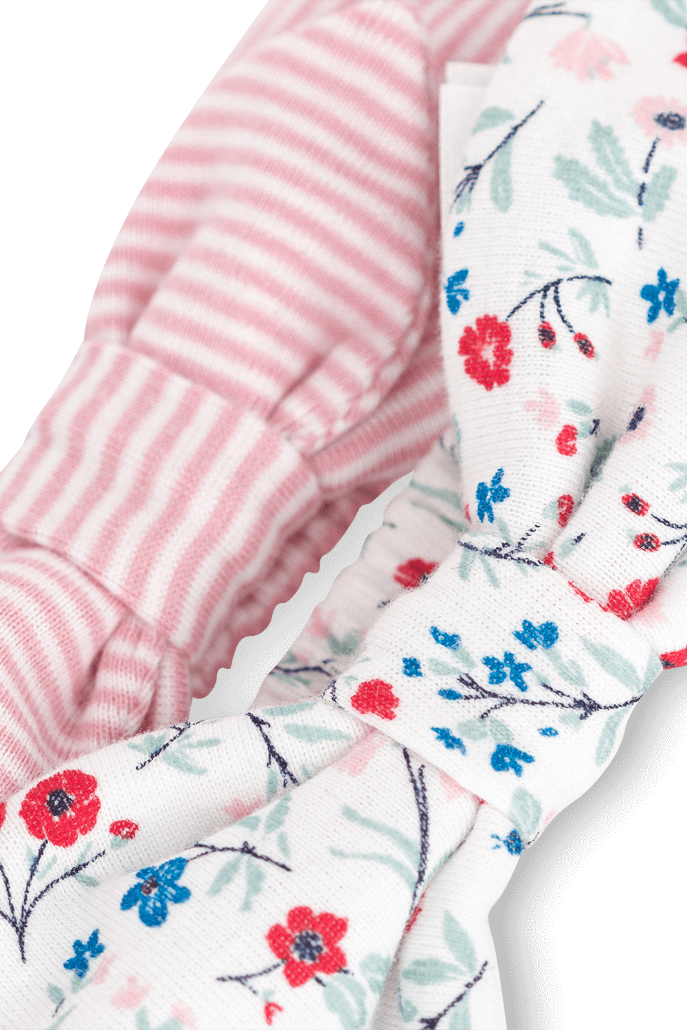 מארז שני סרטים לשיער מבית Petit Bateau, עשויים כותנה בדוגמת פסים ובהדפס פרחוני.