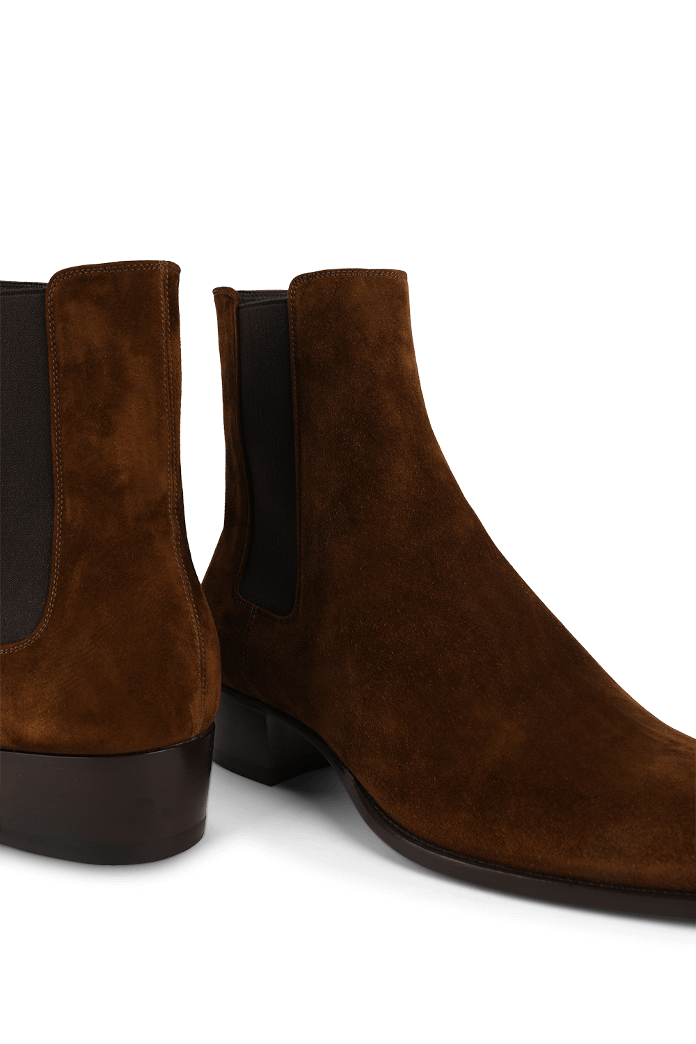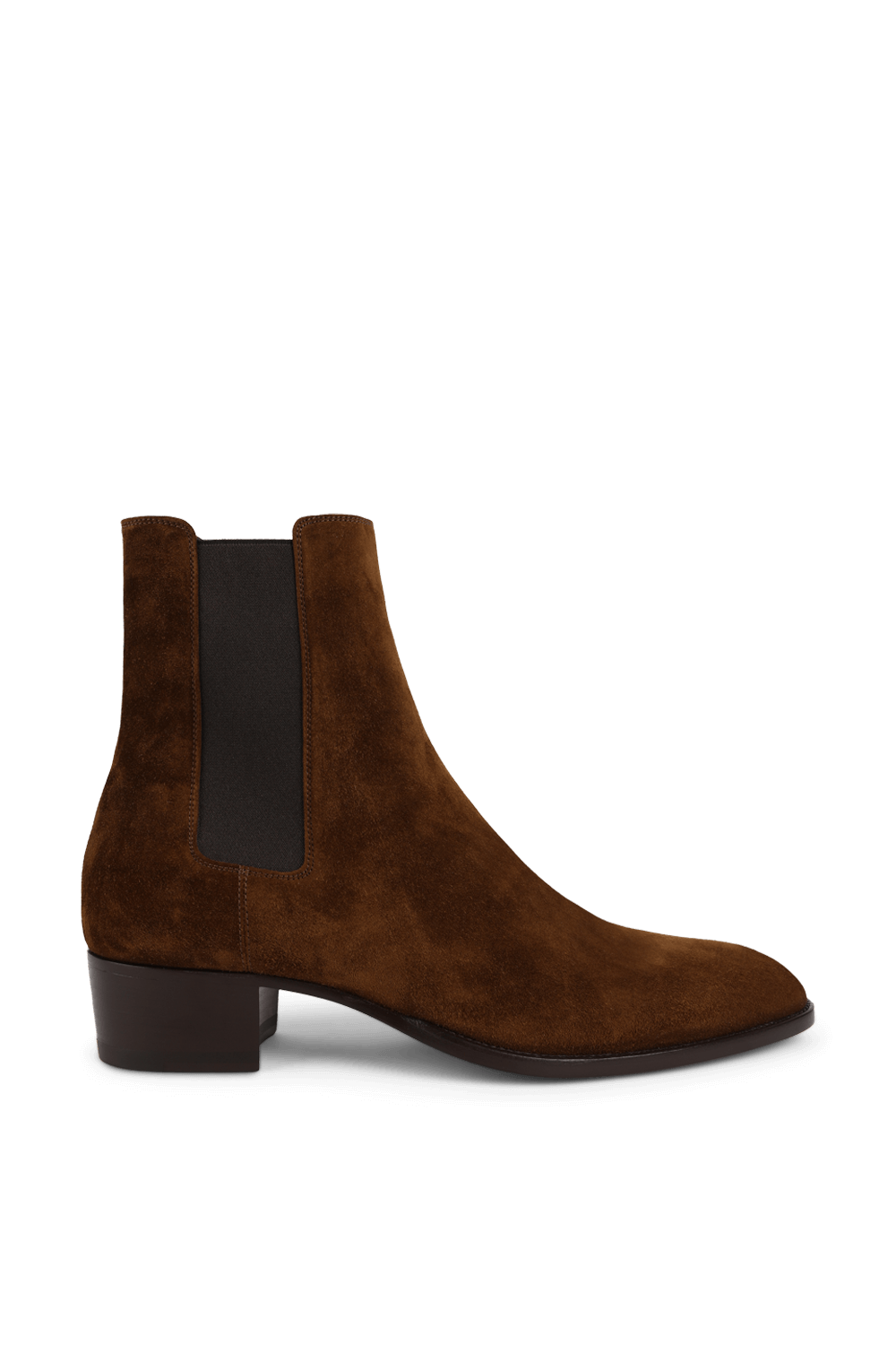 מגפונים מבית האופנה הצרפתי העילי Saint Laurent. זהו דגם צ'לסי בשם WYATT העשוי 100% עור משובח בצבע חום. לפריט צללית קלאסית בגובה קרסול עם עקבים נמוכים. מדובר בזוג על זמני שיתאים למגוון רחב של מערכות לבוש בסטייל אלגנטי ונצחי.