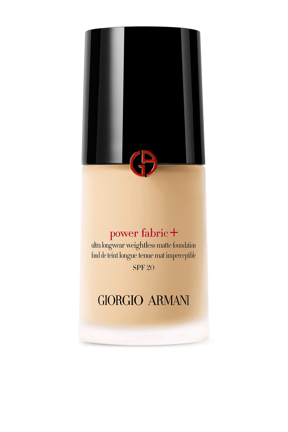 מייקאפ 2 POWER FABRIC מבית Armani Beauty, במרקם קליל ובגימור מאט בעל הגנת SPF20 לעור הפנים. 30 מיל.