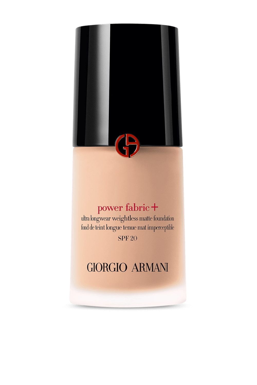 מייקאפ 4.85 POWER FABRIC מבית Armani Beauty, במרקם קליל ובגימור מאט בעל הגנת SPF20 לעור הפנים. 30 מיל.