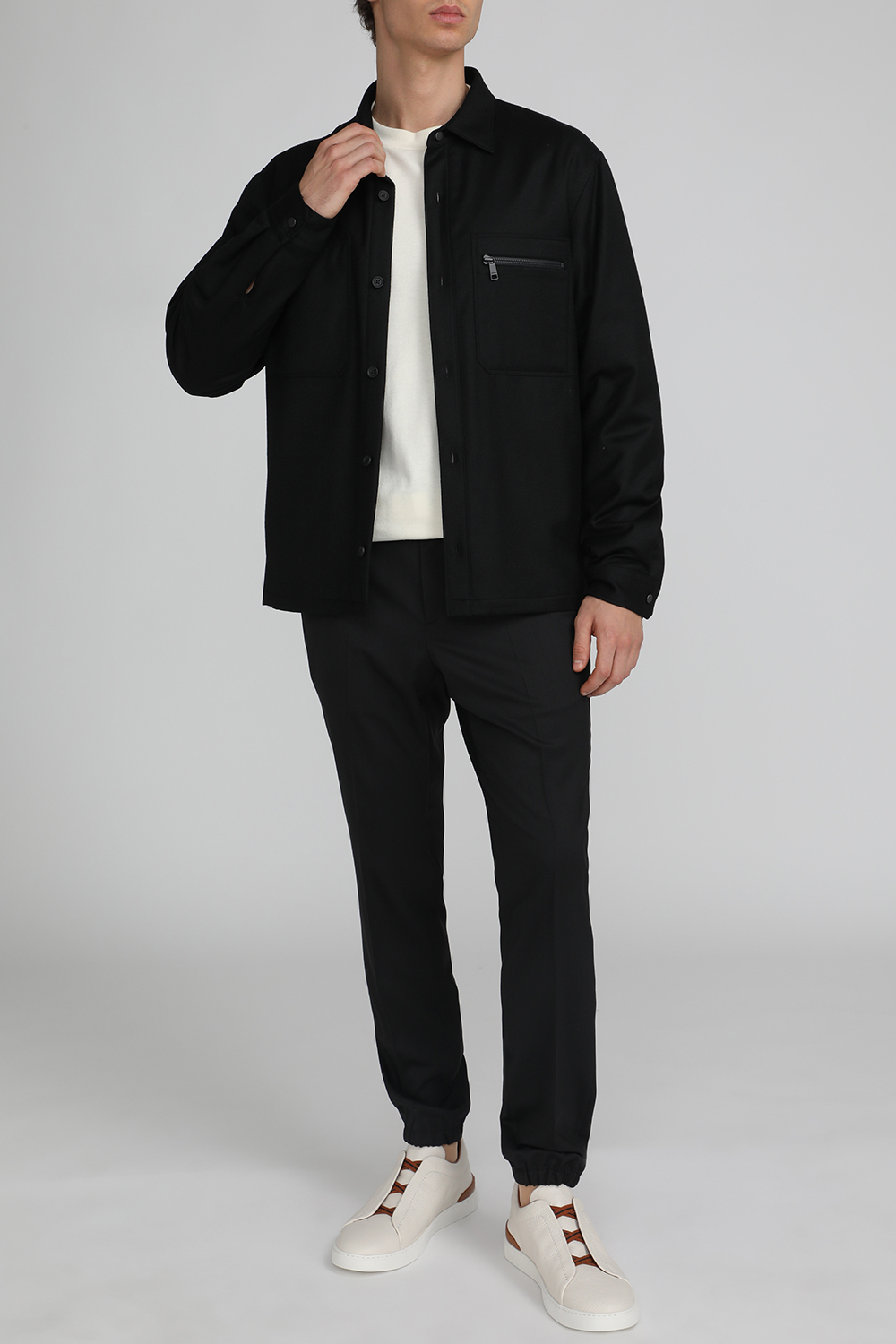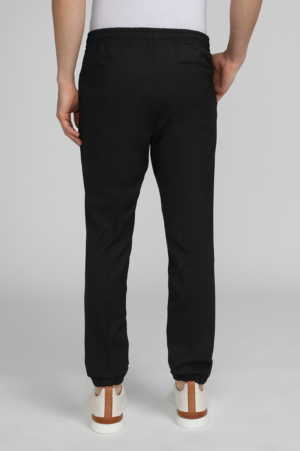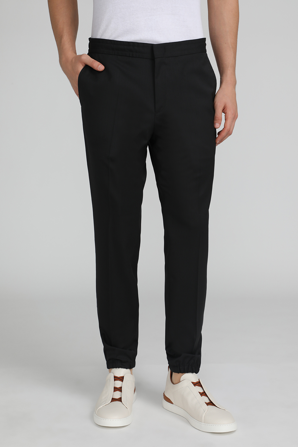 מכנסיים ארוכים מבית Zegna, עשויים תערובת צמר, פוליאסטר ואלסטן בצבע שחור עם שני כיסי צד ובסיומת גומי.