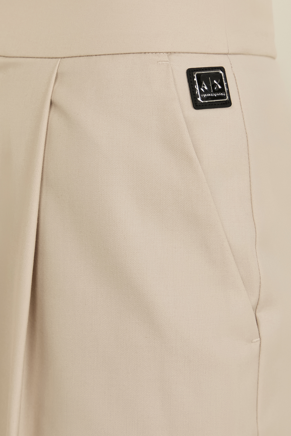מכנסיים מחוייטים מבית Armani Exchange, עשויים בד קייצי רך מתערובת ויסקוזה בצבע בז'. שלבו אותם עם ז'קט מחוייט תואם וקבלו את החליפה הקייצית המושלמת.
