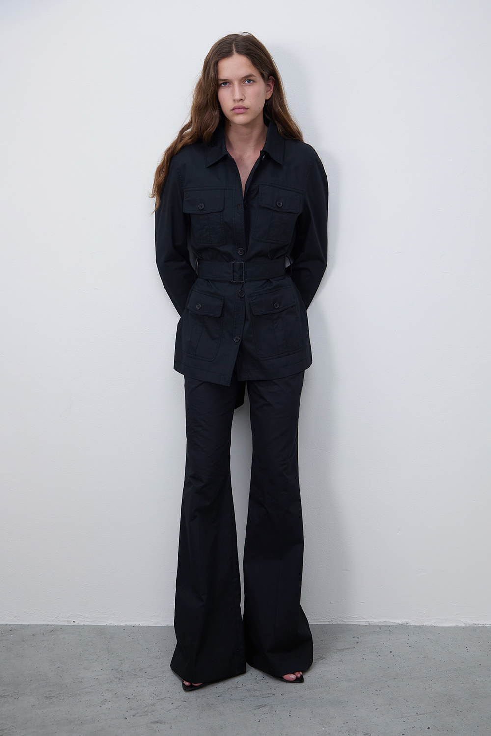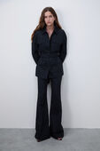 מכנסיים בגזרה מתרחבת Effy עשויים כותנה פופלין בצבע שחור, בסגירת רוכסן.