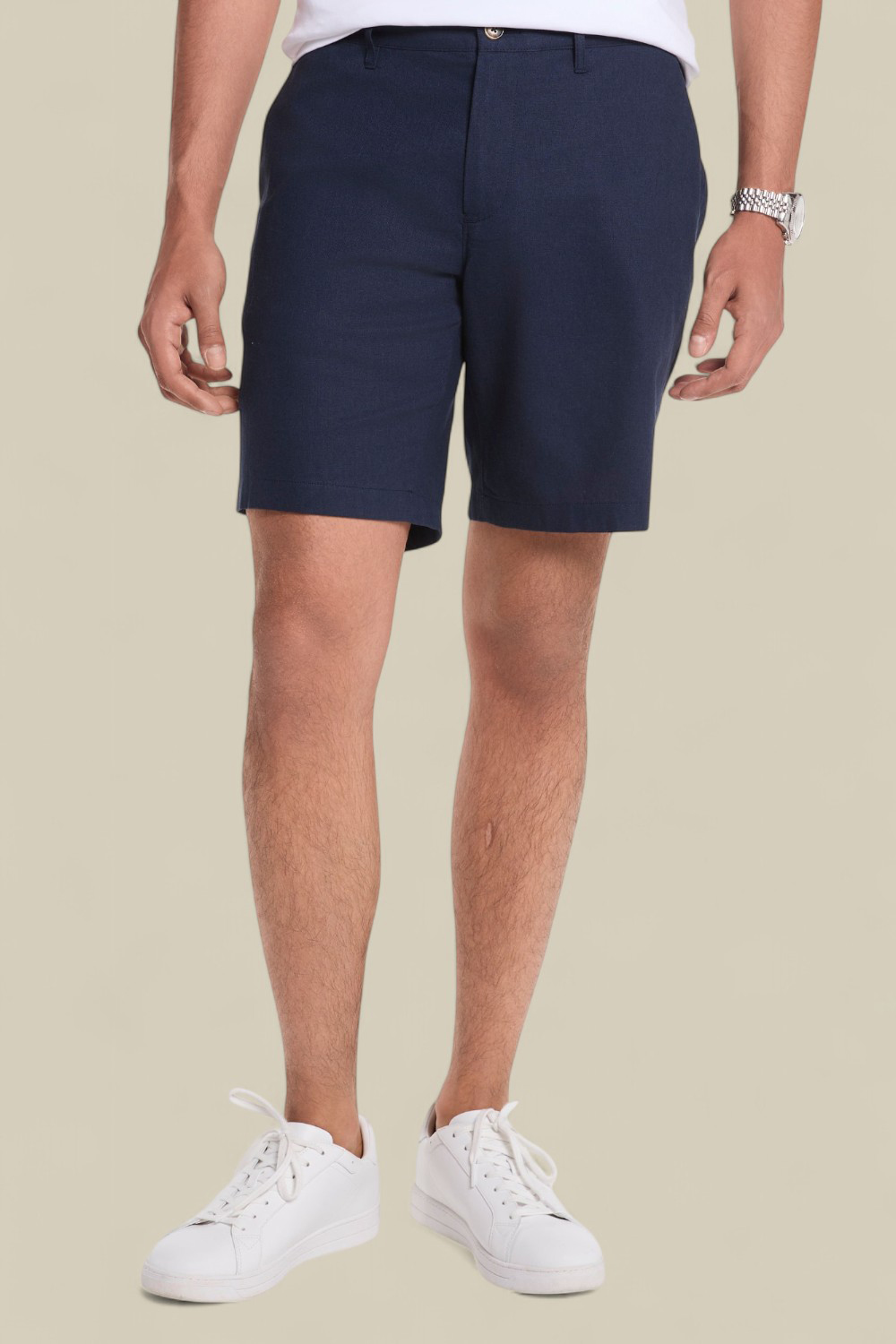 מכנסיים קצרים מבית Michael Kors, מעוצבים בסגנון מעט מחוייט ועשויים כותנה ופשתן בצבע כחול.