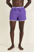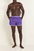 מכנסי בגד ים בגזרה קצרה מבית Puma, עשויים פוליאמיד ממוחזר בצבע סגול בשילוב חגורת מותניים אלסטית ושרוכים. לבגד הים שני כיסי צד וכיס אחורי, בשילוב בטנת רשת כשלוגו המותג מופיע בסיומת.