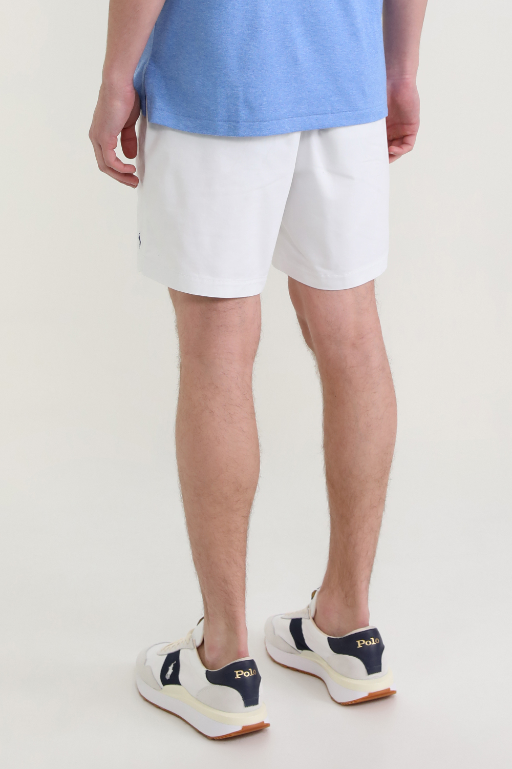 מכנסיים קצרים לבנים של בית האופנה המוביל Polo Ralph Lauren. זהו דגם העשוי מכותנה איכותית עם רצועת מותן אלסטית פלוס כפתור מרכזי לכדי צללית ישרה מחמיאה באורך קצר מעל הברך. סמל הפרש האייקוני רקום סמוך לאמרה השמאלית בחוט כחול ועניק טאץ` עדכני ומוביל לפריט.