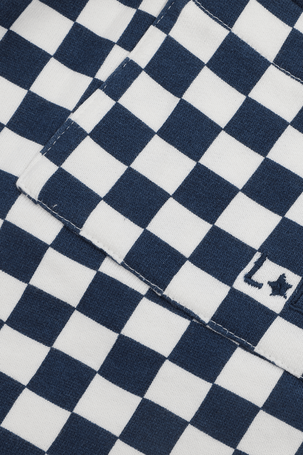 מכנסי ברמודה מבית Louis Louise מדגם Brooklyn העשויים כותנת פליז בהדפס משבצות בצבעי כחול ולבן. למכנסיים שרוכי קשירה, שני כיסי צד, וכיס אחורי.