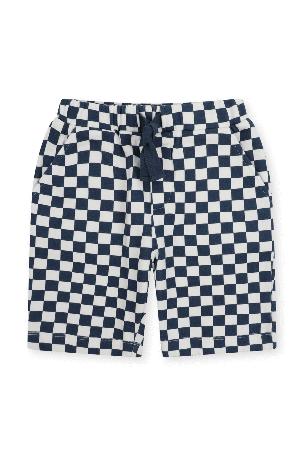 מכנסי ברמודה מבית Louis Louise מדגם Brooklyn העשויים כותנת פליז בהדפס משבצות בצבעי כחול ולבן. למכנסיים שרוכי קשירה, שני כיסי צד, וכיס אחורי.