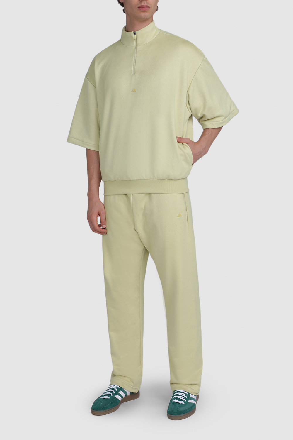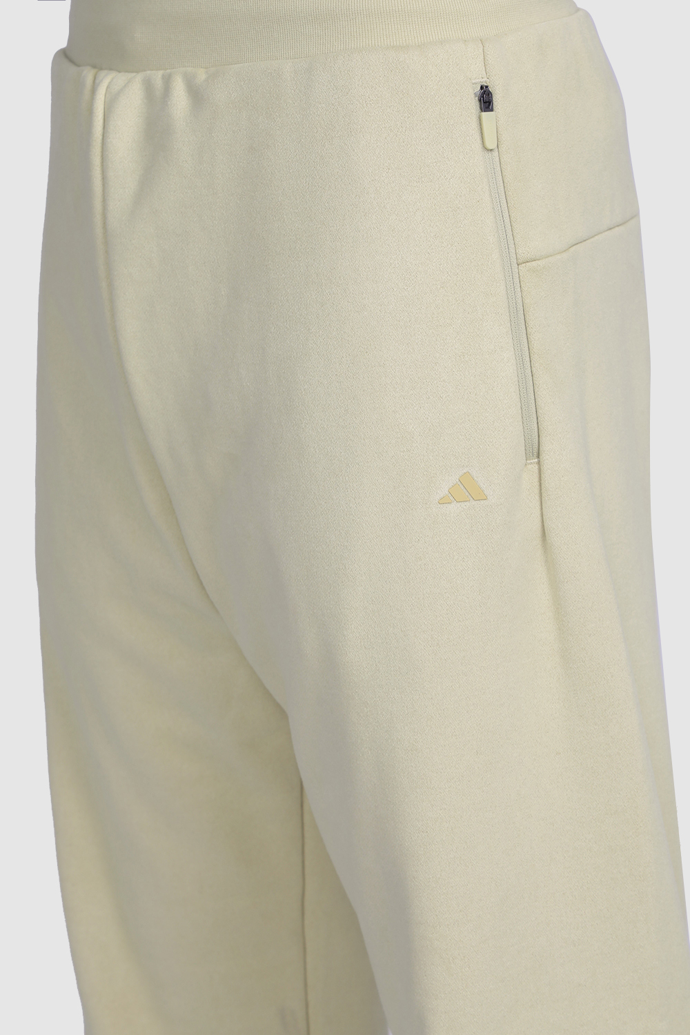 מכנסי ג'וגר מבית Adidas, עשויים תערובת פוליאסטר ממוחזר וכותנה בצבע צהוב ובגימור זמש בשילוב חגורת מותניים אלסטית.