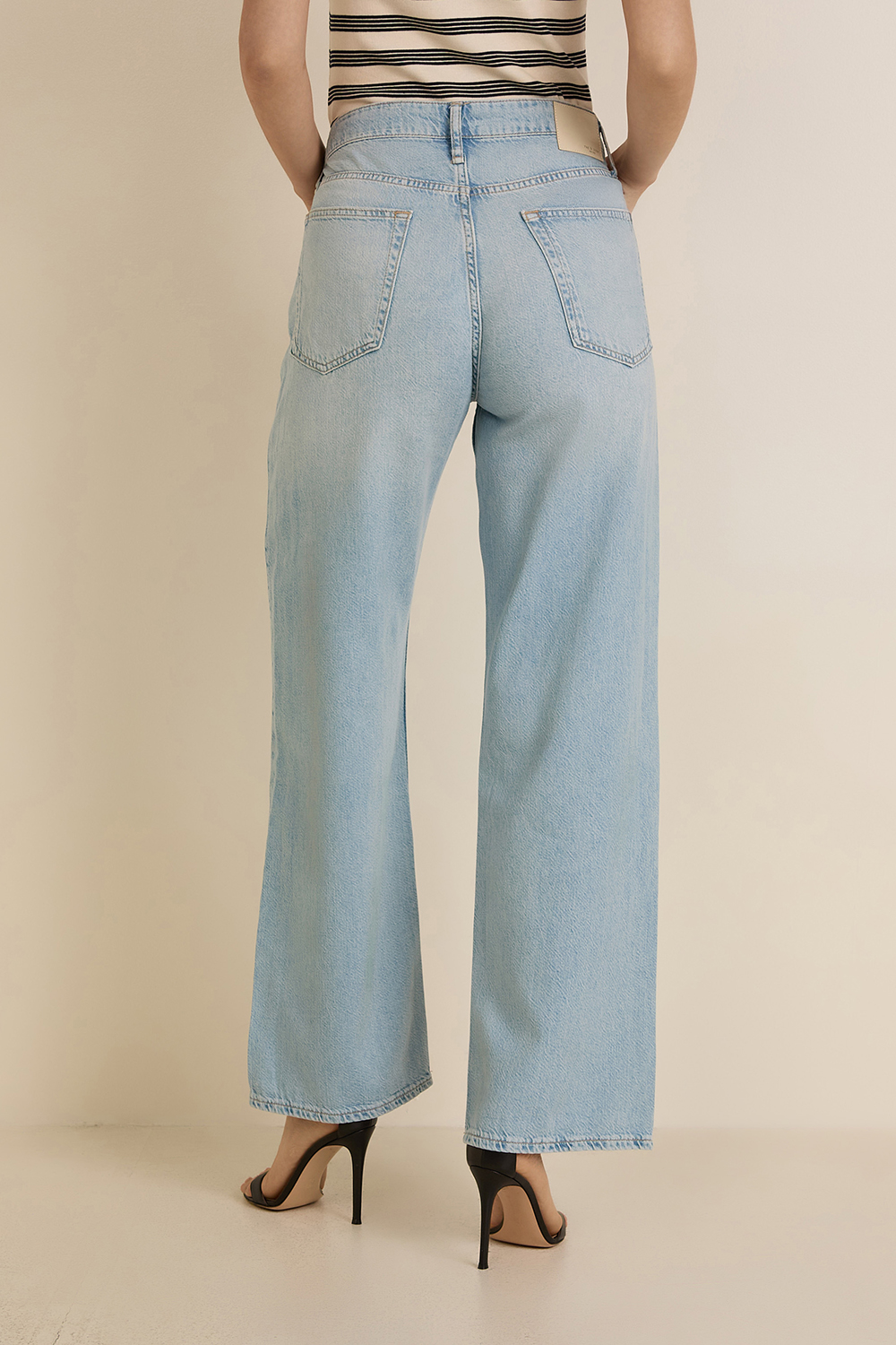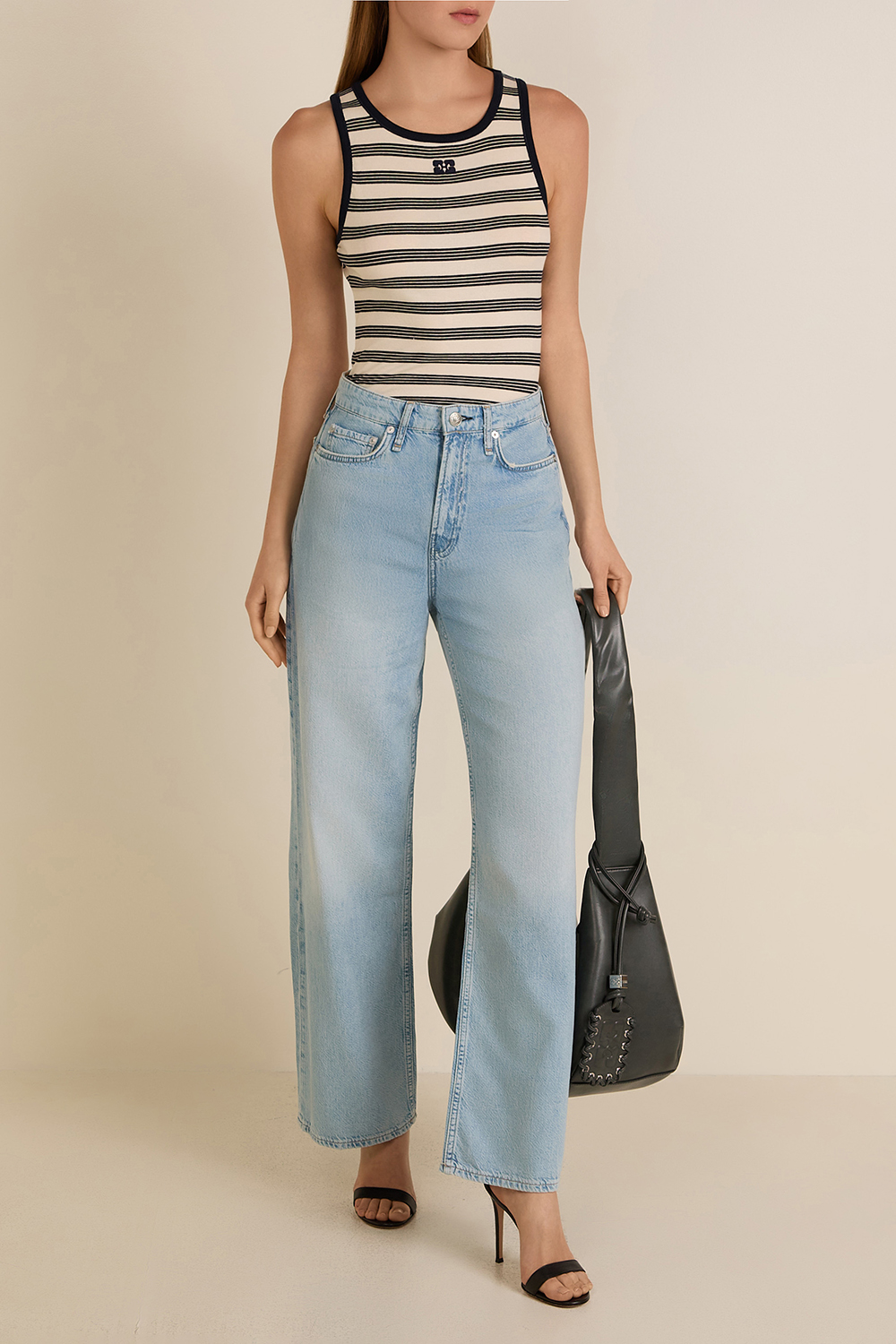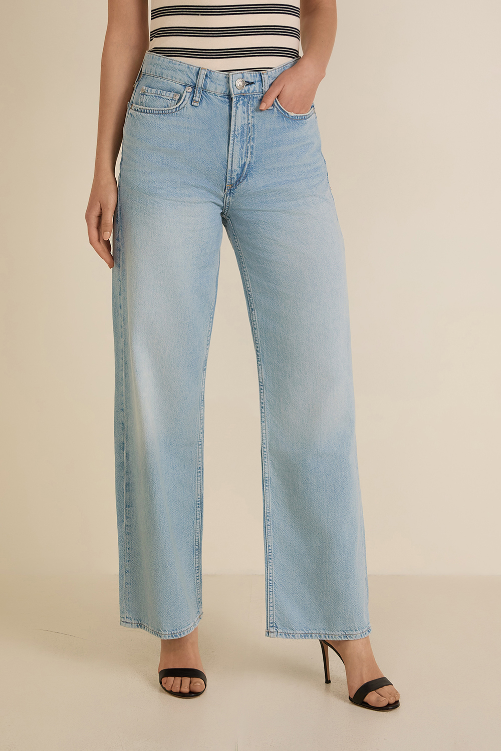 מכנסי ג'ינס בגזרה מתרחבת מבית Rag & Bone, עשויים מכותנה אורגנית וליוסל ממוחזר בצבע כחול.ניתן לקחת את המידה הרגילה שלכם לגזרה נמוכה ומראה נינוח, או מידה קטנה יותר לגזרה גבוהה.