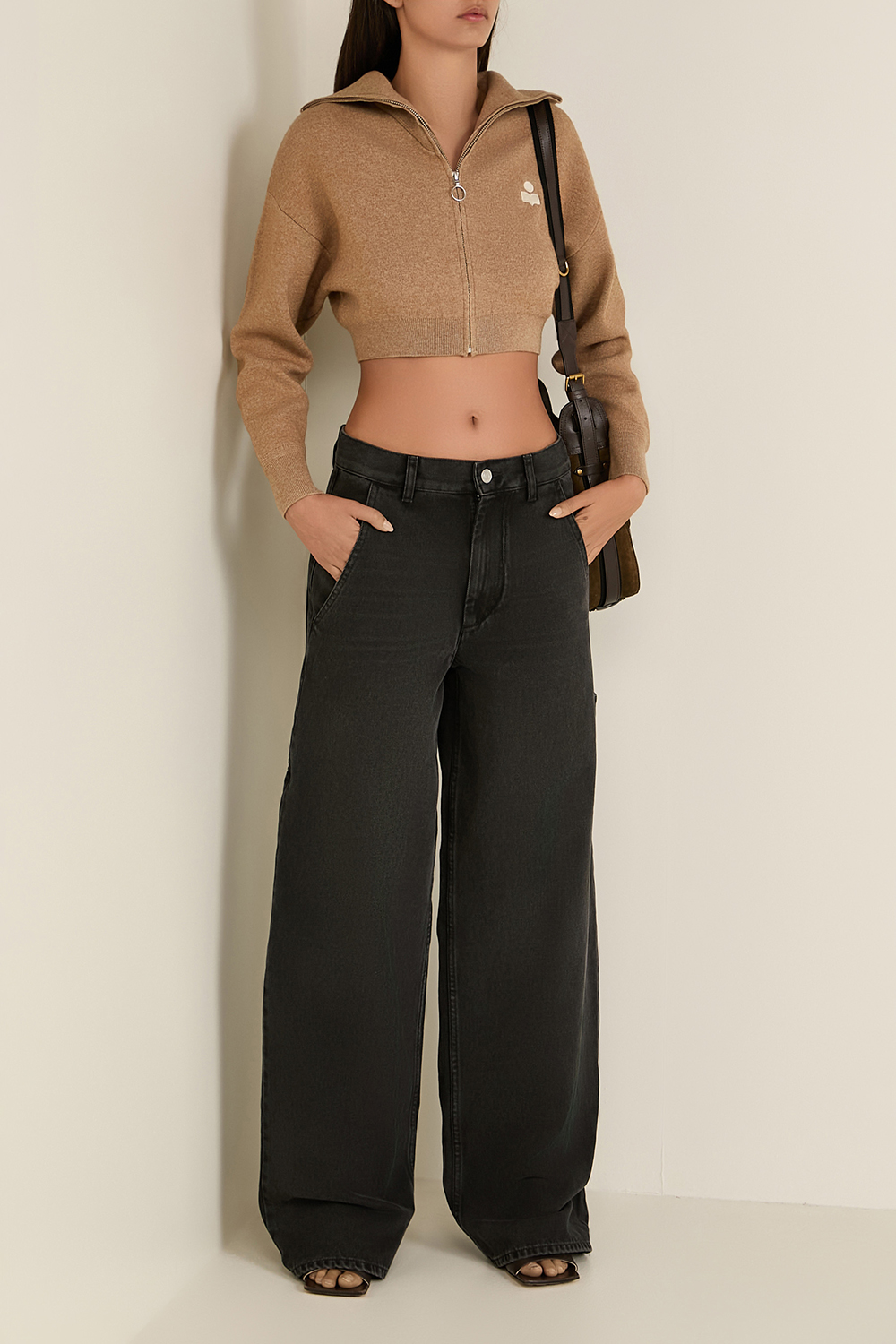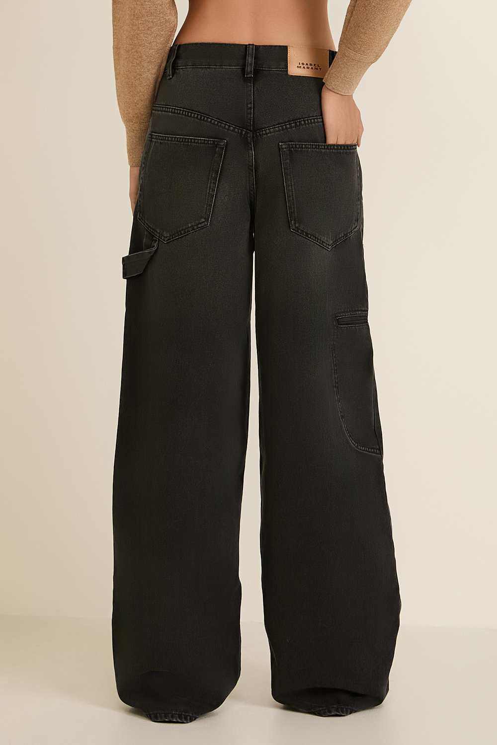 מכנסי ג'ינס Solene בגזרה רחבה ומשוחררת מבית Isabel Marant, עשויים כותנת דנים בצבע שחור.