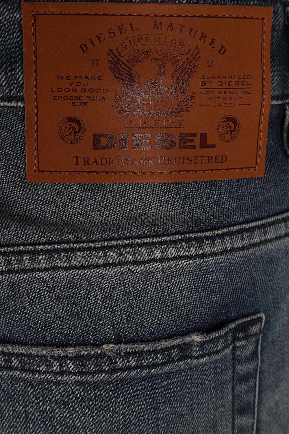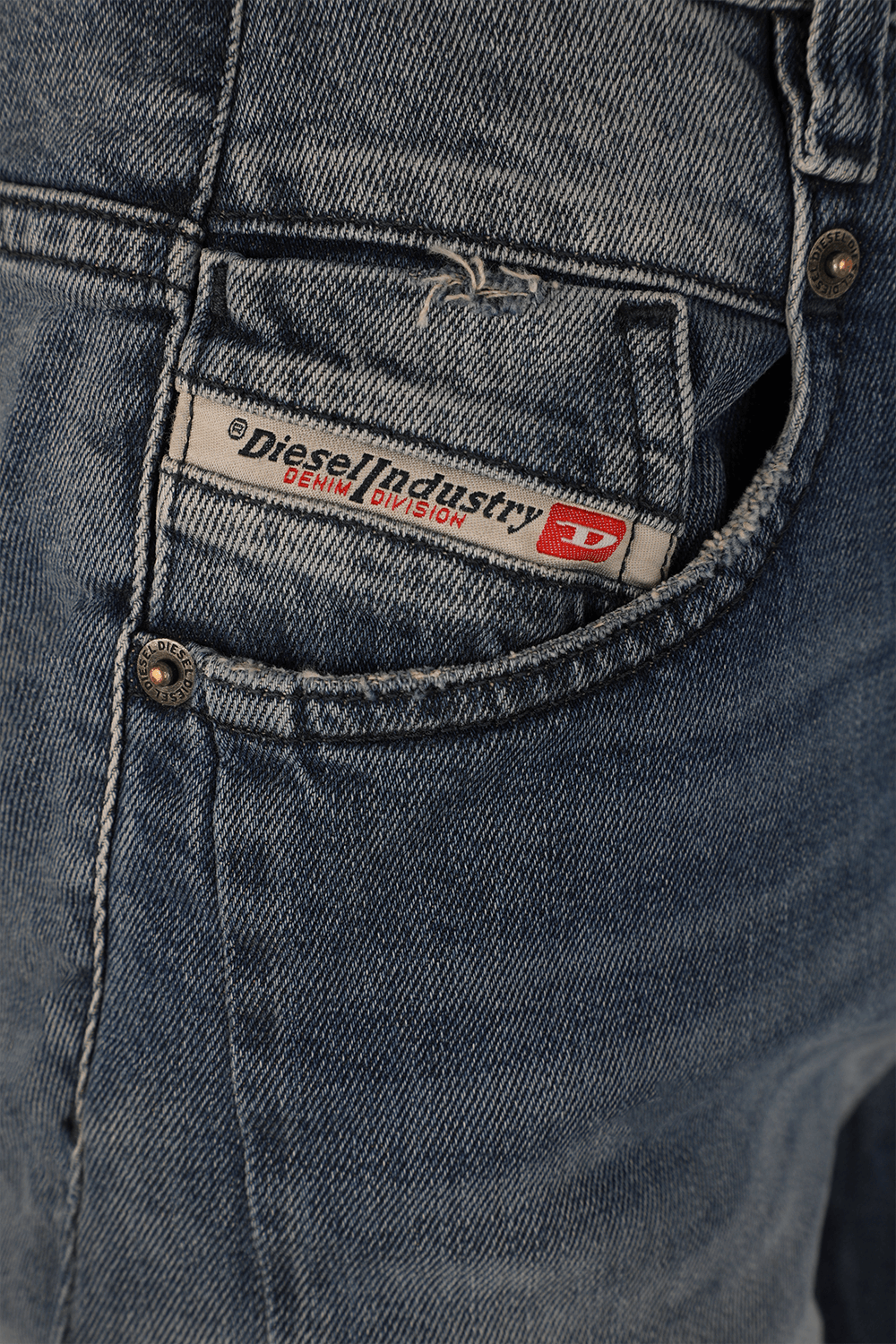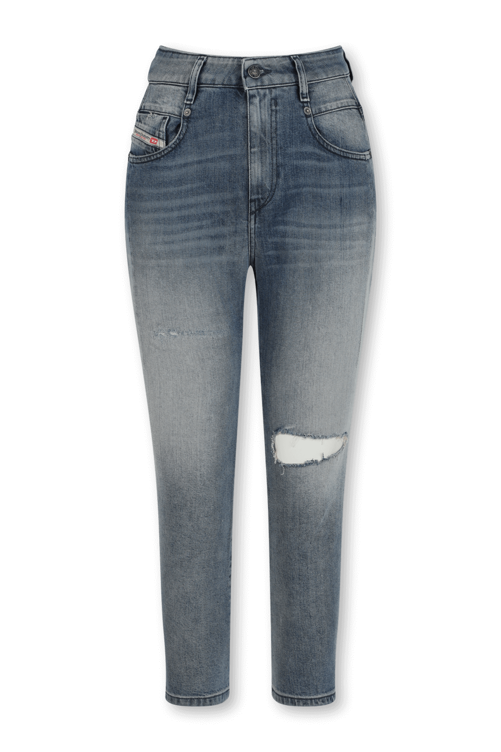 מכנסי ג'ינס בגזרת בויפרנד מבית Diesel, עשויים מתערובת כותנת דנים סטרצ'ית בצבע כחול בעיצוב קרעים משופשף.