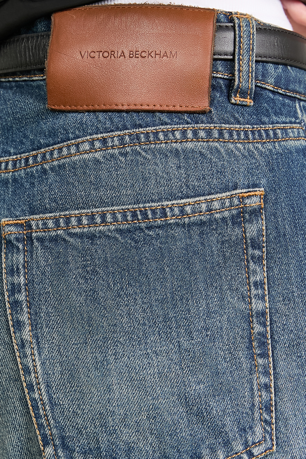 מכנסי ג'ינס Bernie בגזרה ישרה מבית Victoria Beckham, תוצרת איטליה, עשויים כותנת דנים בצבע כחול ובעיצוב משופשף במראה וינטג'.
