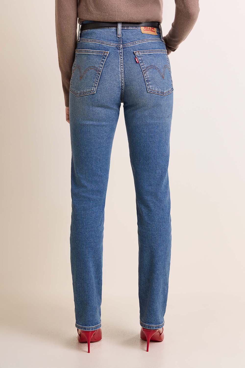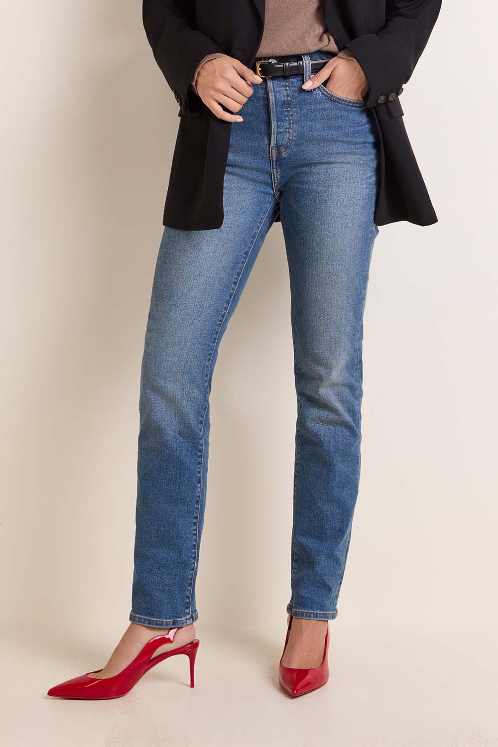מכנסי ג'ינס מדגם Wedgie Straight בעיצוב מותג הדנים האמריקאי Levi's. המכנסיים עשויים מכותנת דנים מעט גמישה בצבע כחול כהה בגזרה ישרה.