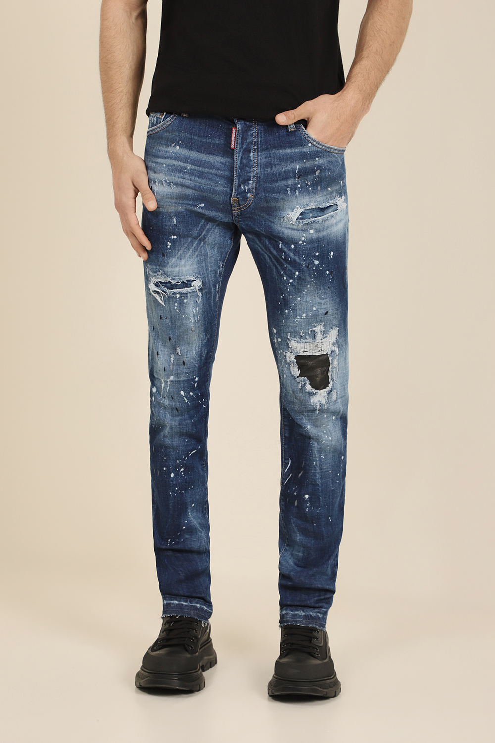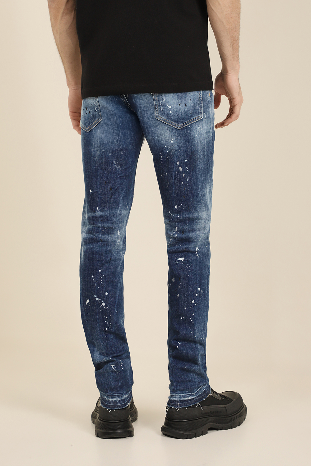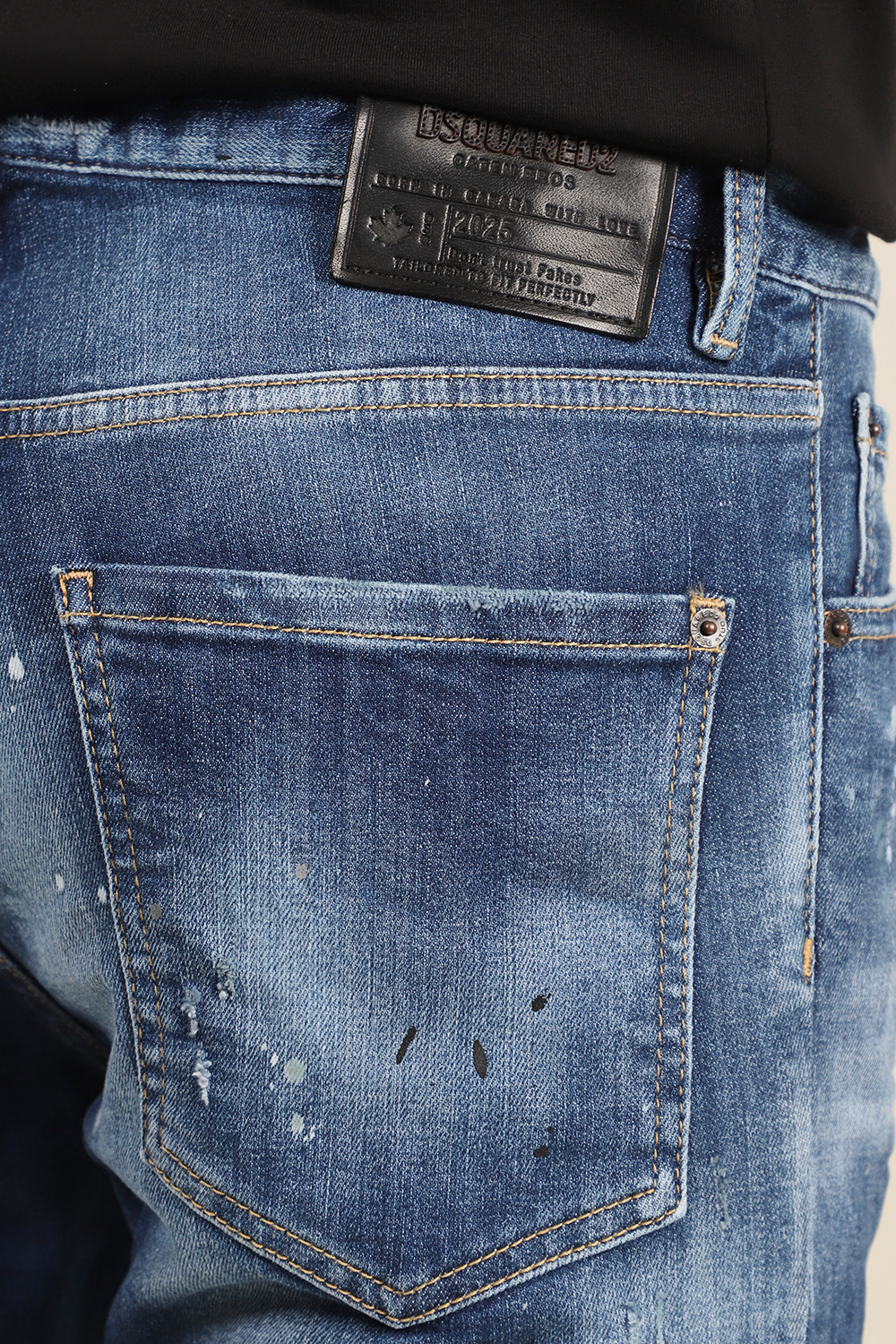 מכנסי ג'ינס Cool Guy בגזרת סלים מבית Dsquared2. הם עשויים כותנת דנים מעט אלסטית בעיצוב קרעים ובמראה משופשף. נסגרים בכפתורים.