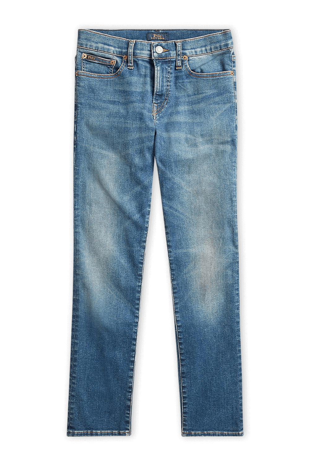 מכנסי ג'ינס מבית Polo Ralph Lauren, עשויים תערובת כותנת דנים ופוליאסטר בשטיפה כחולה ובמראה וינטג'.