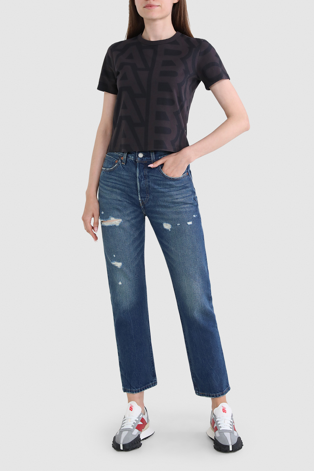 מכנסי ג'ינס 501 האייקונים של Levi's, עשויים כותנת דנים בשטיפה כחולה ובתוספת קרעים, בגזרה ישרה.
