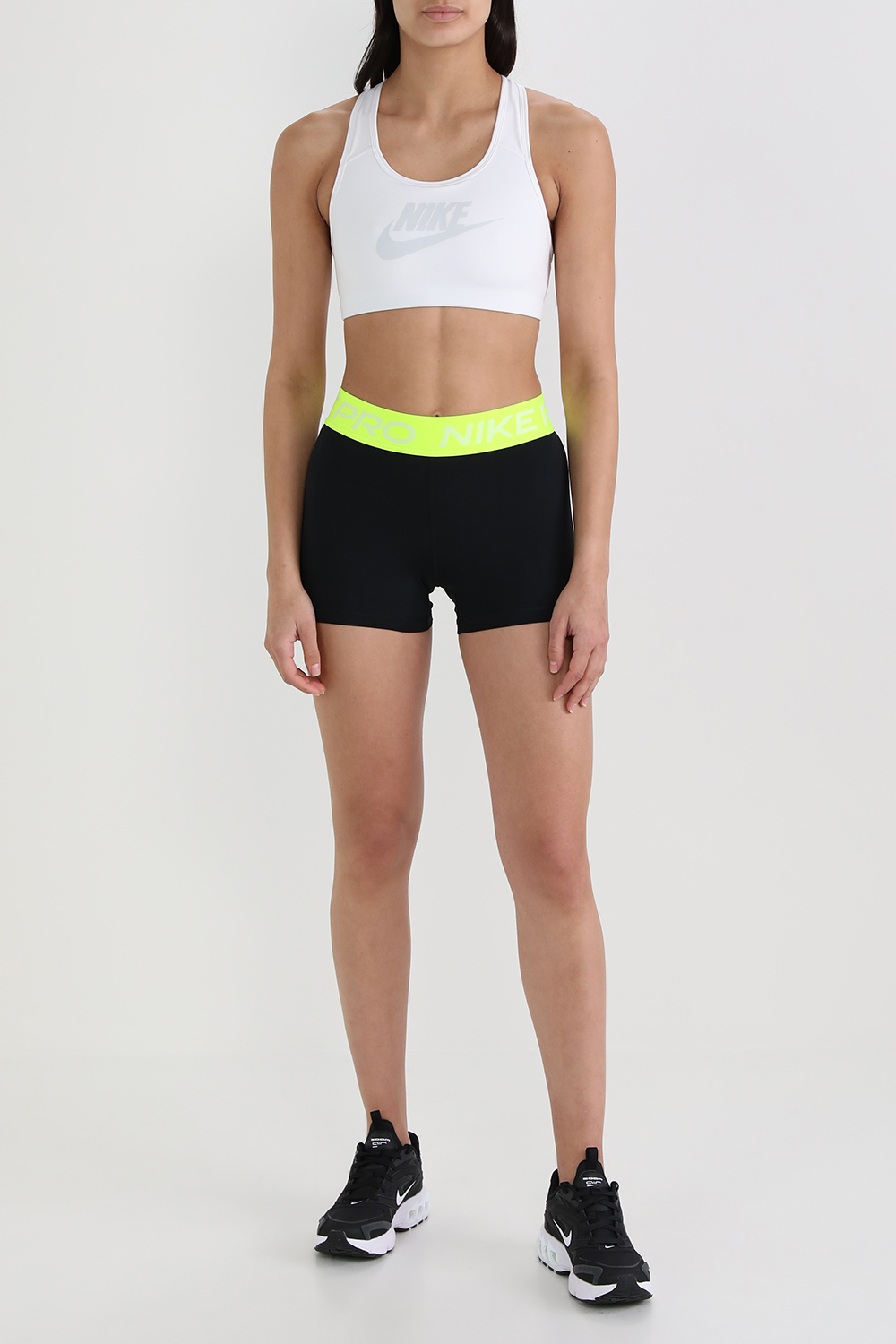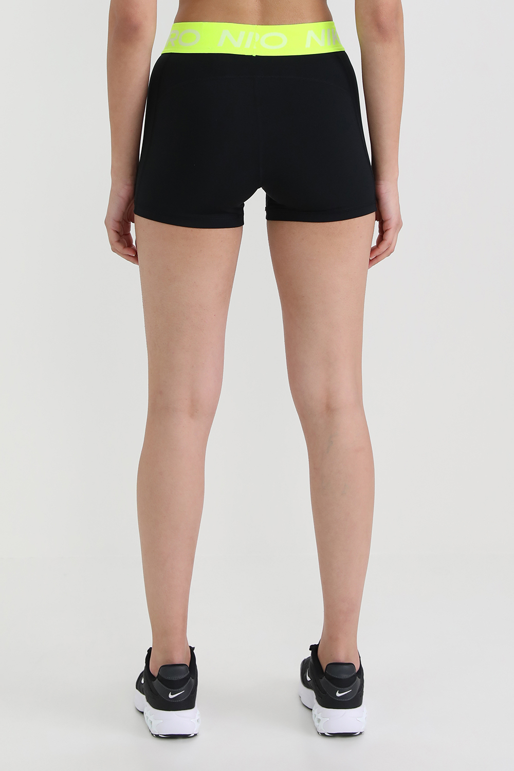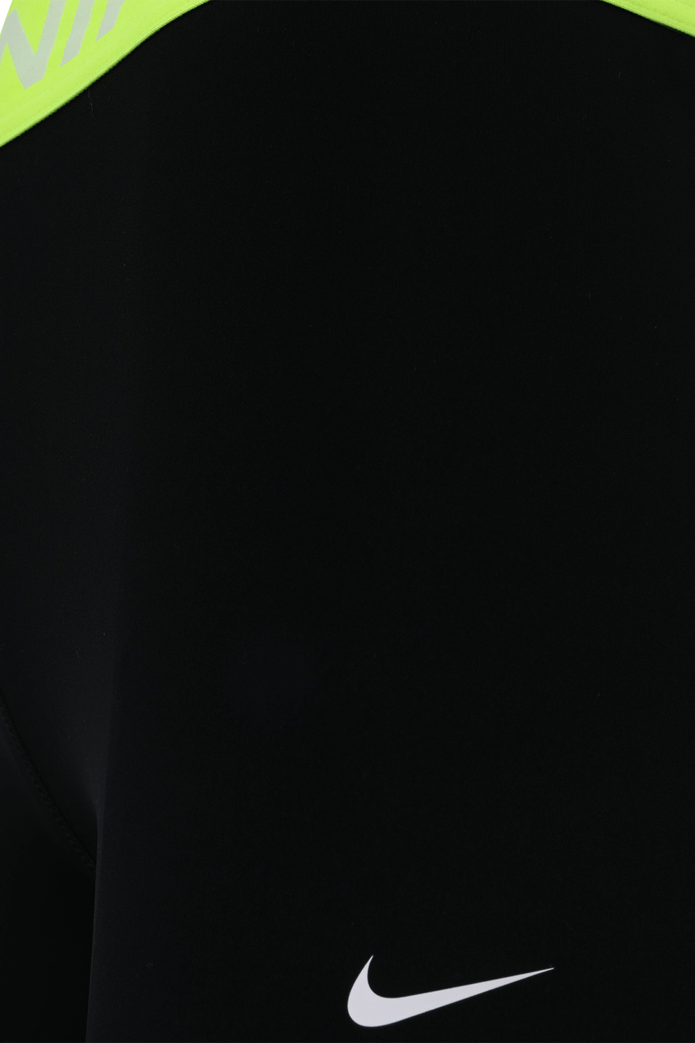 טייץ ספורטיבי בעיצוב ענקית הספורט והאופנה Nike. זהו דגם העשוי פוליאסטר גמיש ונושם בצבע שחור המצגיג גזרה קצרה וצמודה עם קו מותניים גבוהה בצבע צהוב זוהר הנושא את לוגוג המותג בצבע לבן.