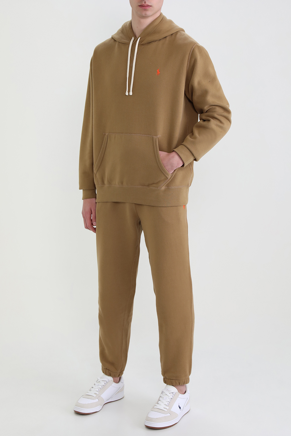 מכנסי טרנינג ארוכים מבית Polo Ralph Lauren בגוון חום. לפריט גזרת סלים נינוחה עם קו מותניים גמיש בעל שרוכים לנוחות והתאמה מקסימלית כאשר לוגו הפרש האייקוני רקום בצד החזית.