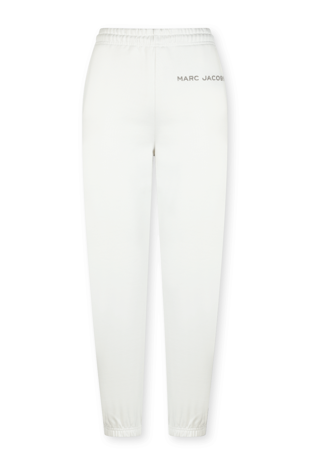מכנסי טרנינג סופר נוחים מבית מארק ג`ייקובס. מכנסיים העשויים 100% כותנה משובחת בגוון לבן. למכנסיים צללית נינוחה ואוברסייזית עם חגורת מותן אלסטית לנוחות מושלמת ולוגו המותג רקום בחוט אפור על גבי הירך השמאלית. אמרות אלסטיות, לצד כיס אחורי ממותג ושני כיסים בצדדים חותמים את סגנונו הקול של זוג זה.