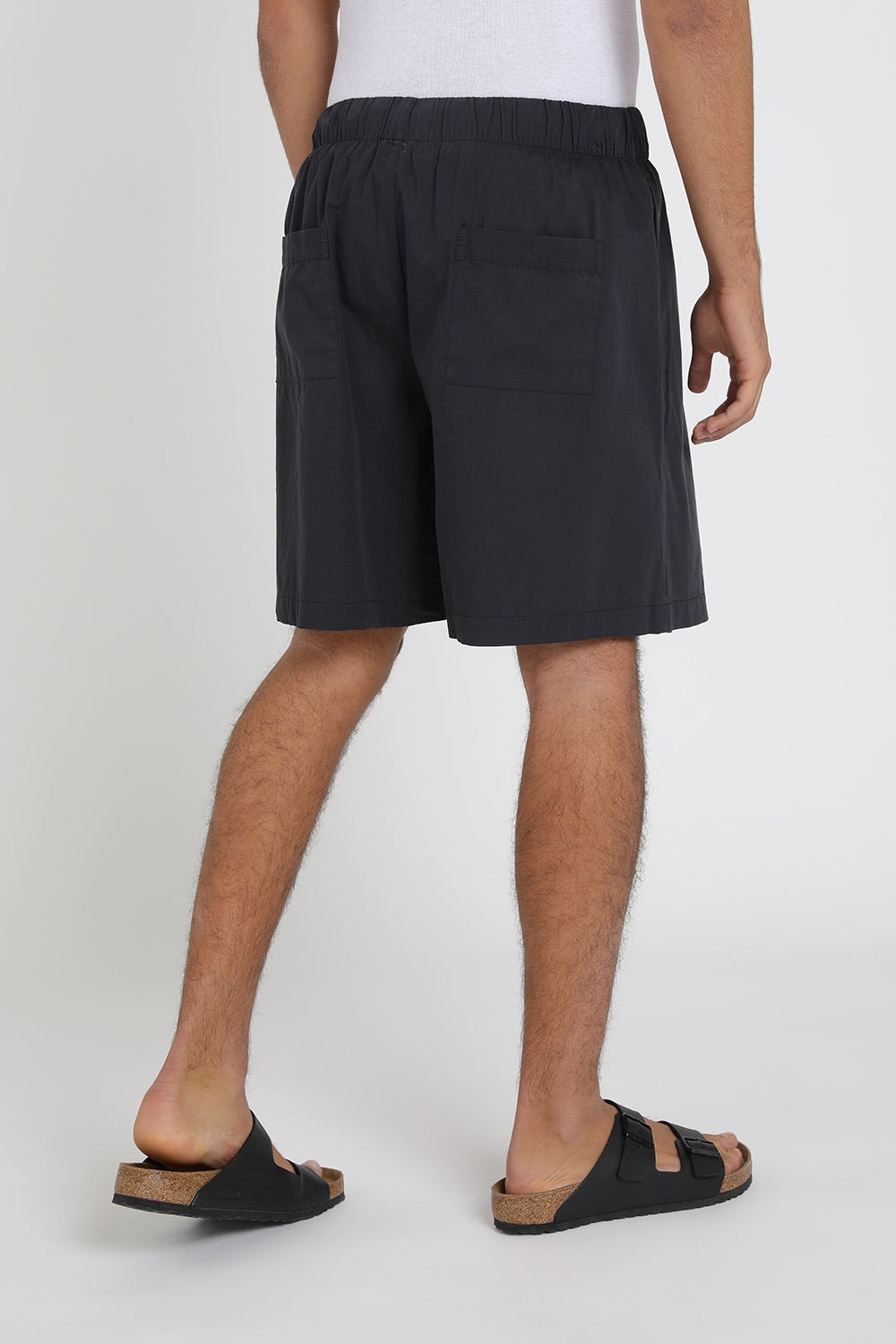 מכנסי פיג'מה ברמודה מבית Birkenstock, עשויים כותנה אורגנית בצבע שחור עם חגורת מותניים אלסטית.