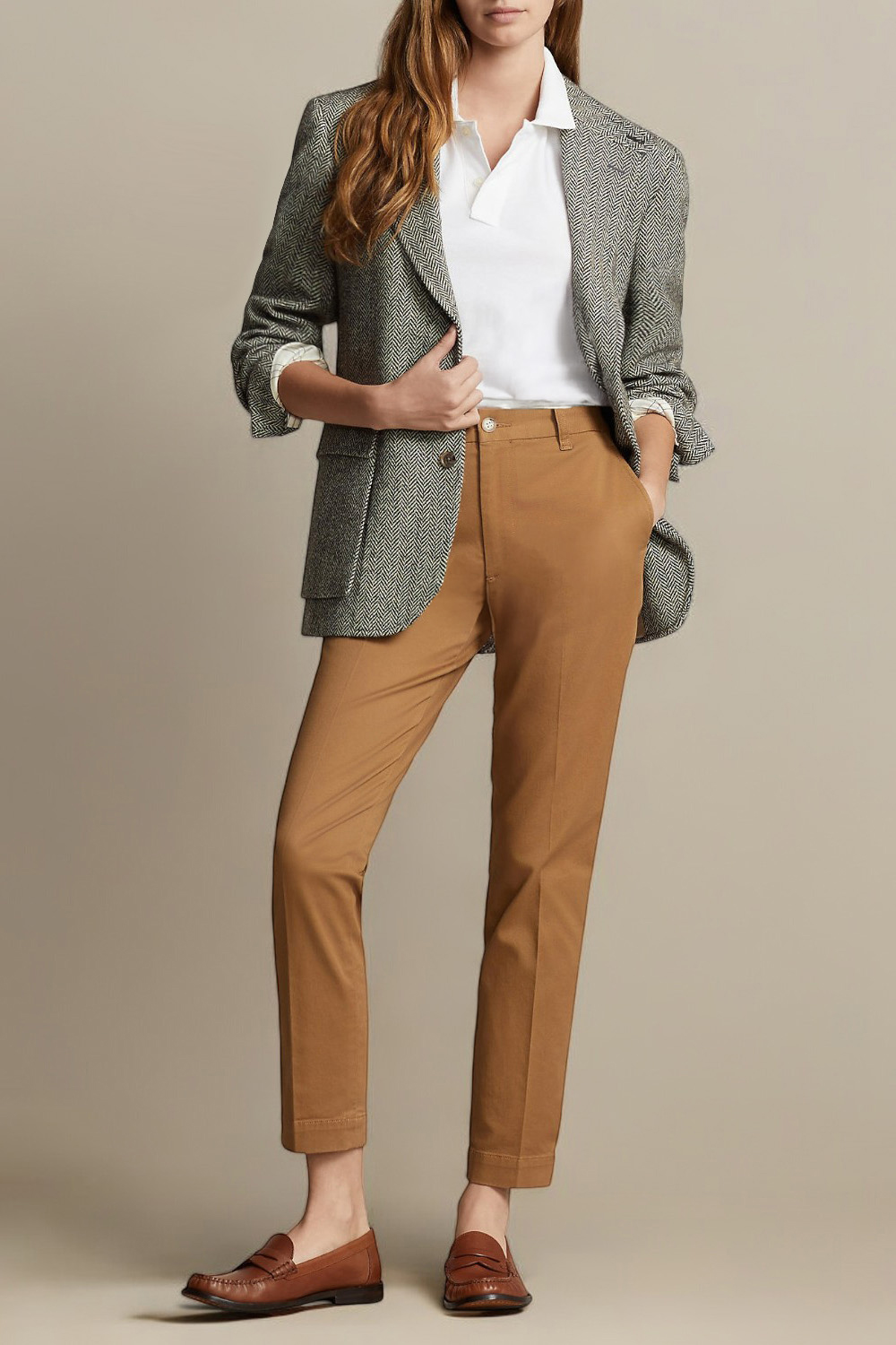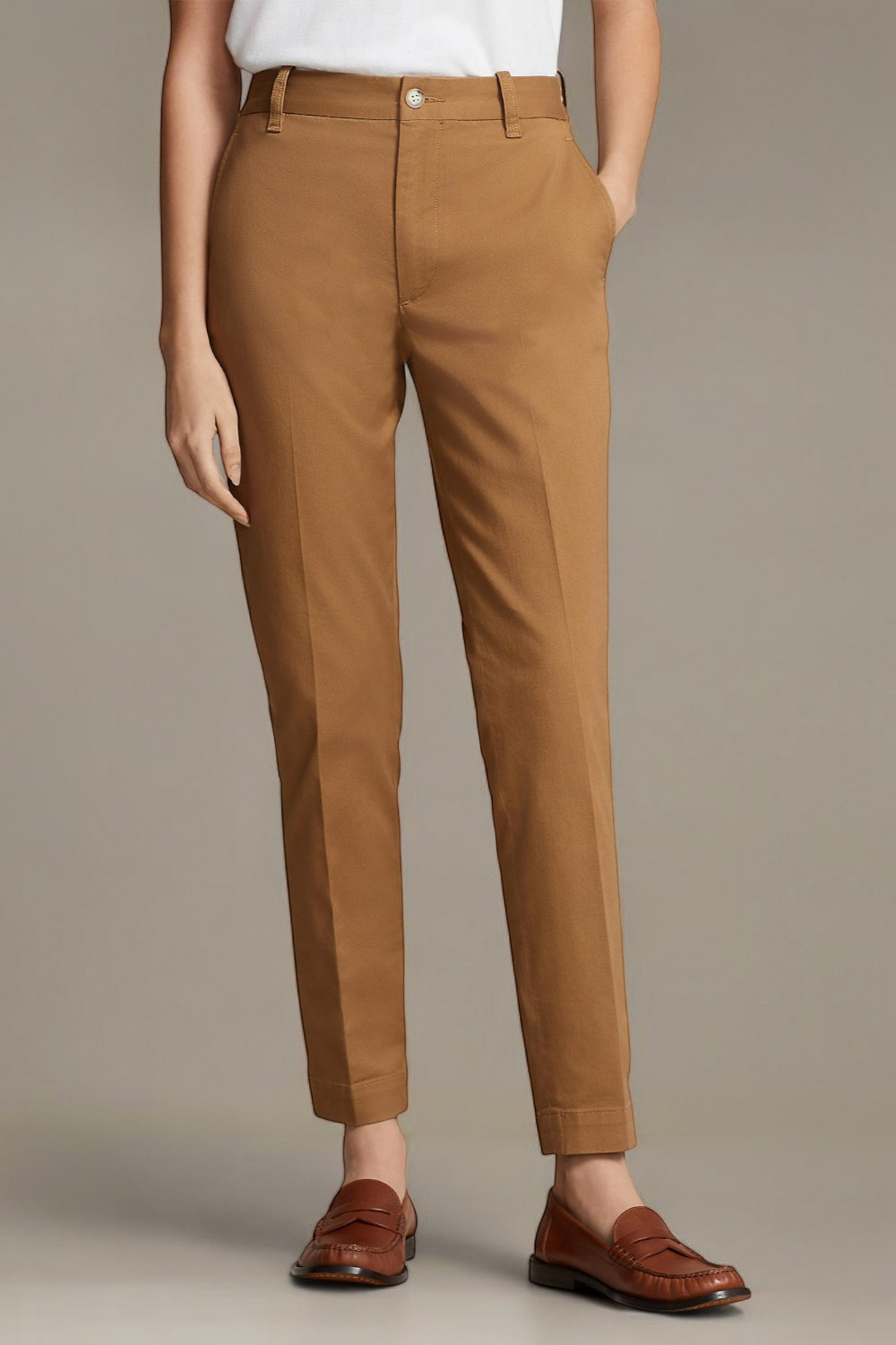 מכנסי צ'ינו בגזרת סלים מבית Polo Ralph Lauren, עשויים כותנה בצבע חום.