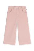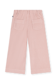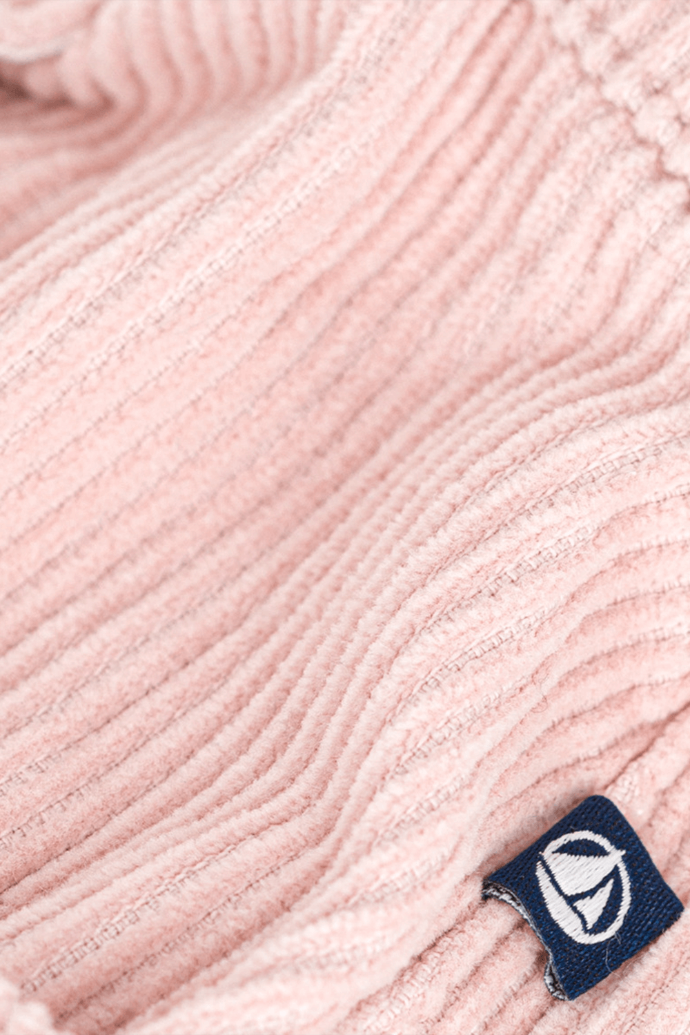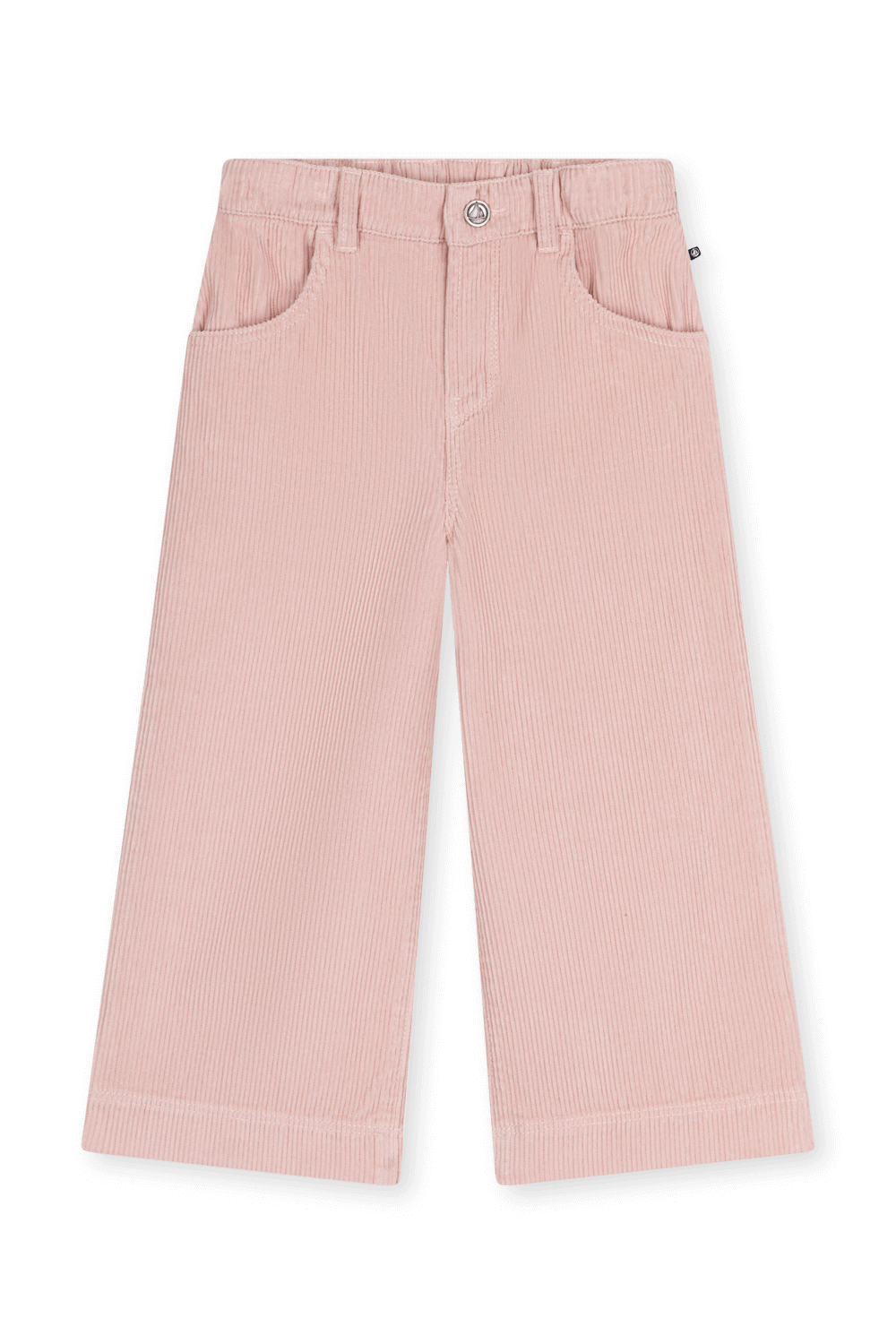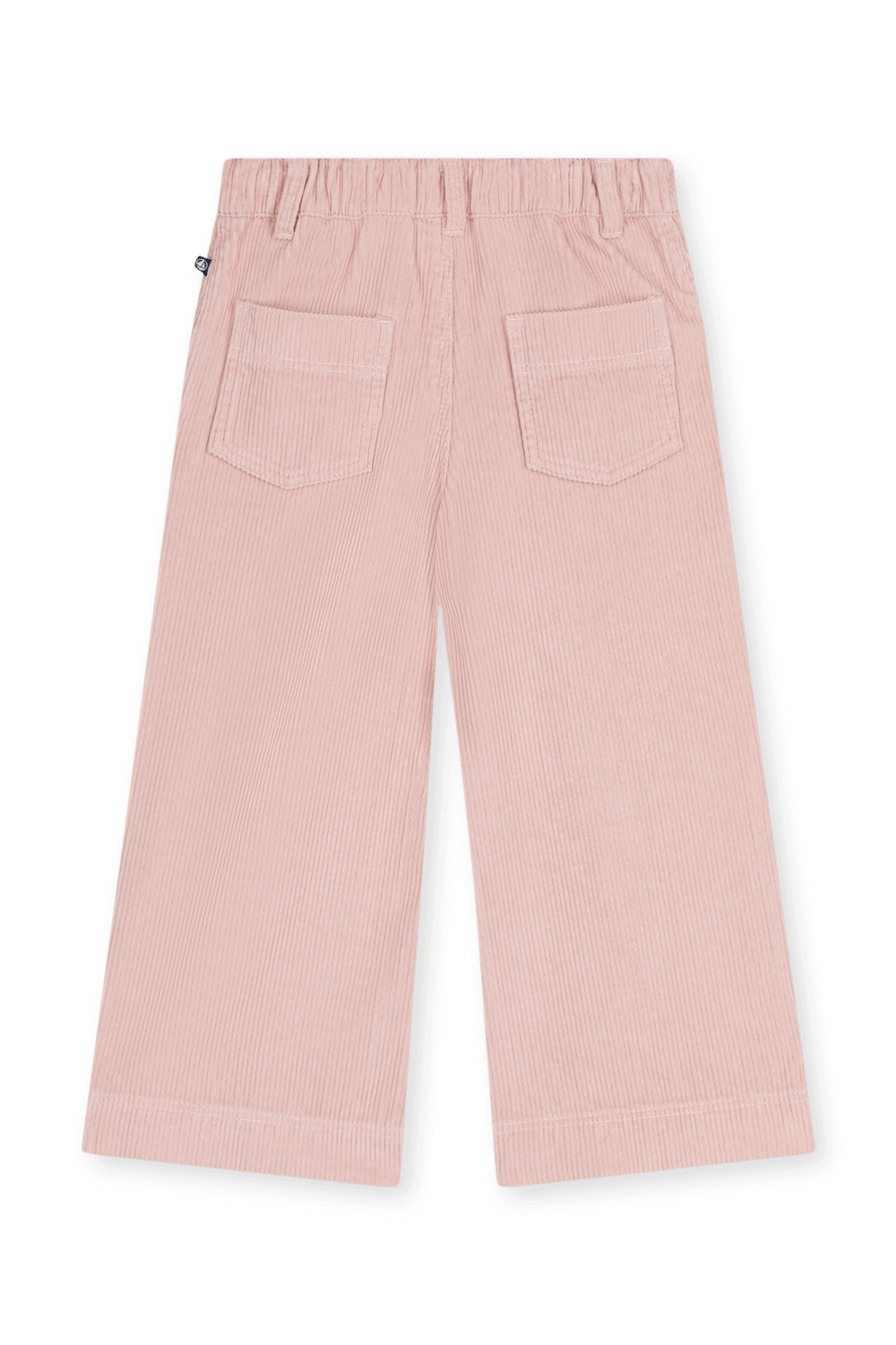 מכנסי קורדרוי ארוכים מבית Petit Beateu, עשויים כותנה בצבע ורוד. ניתן להתאים את חגורת המותניים באמצעות כפתורים פנימיים.