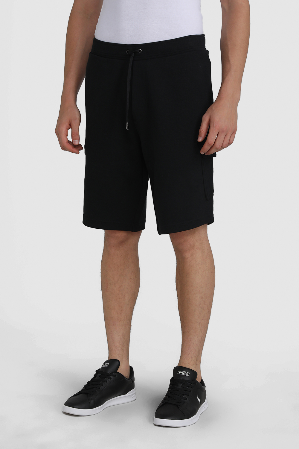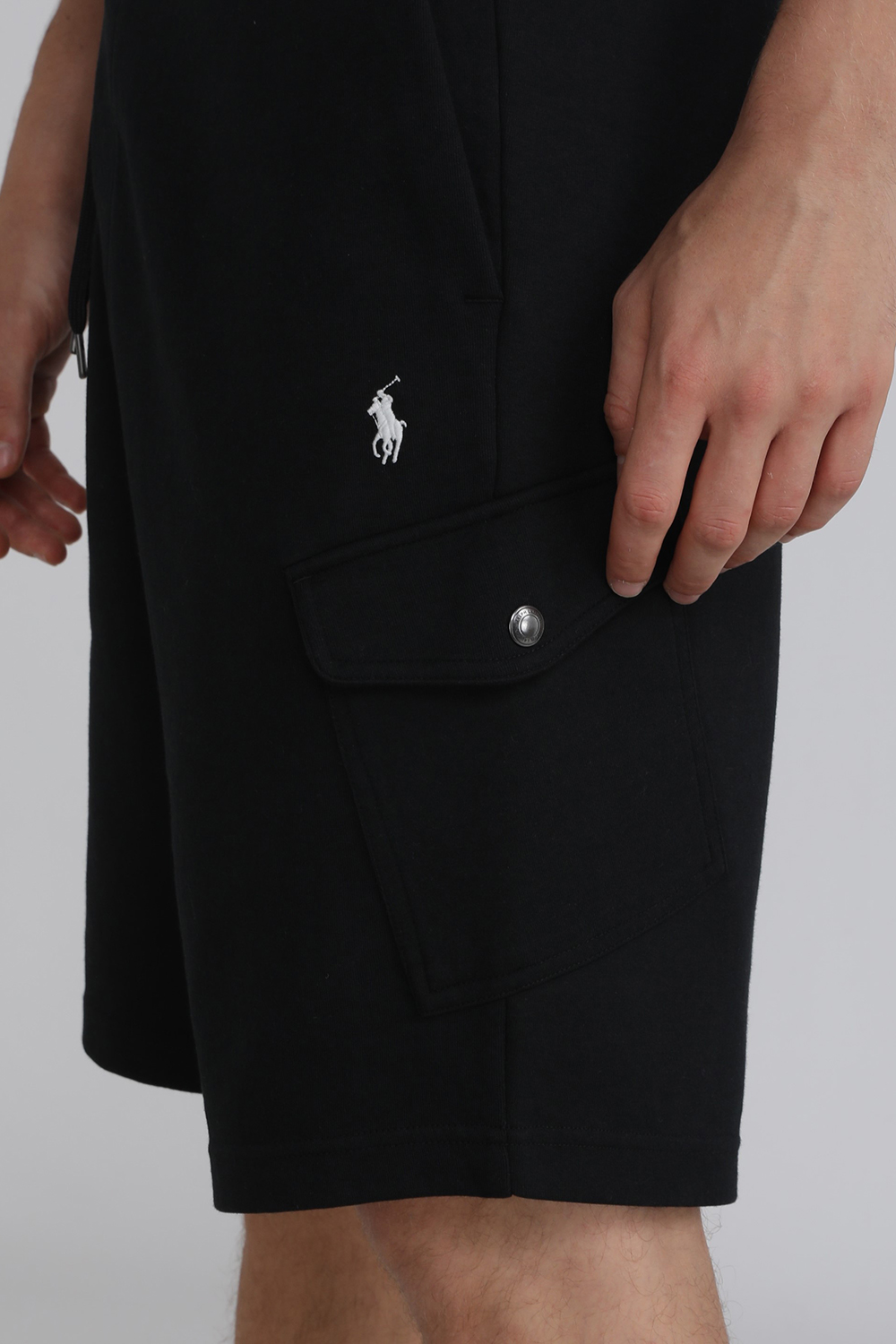 מכנסי קרגו קצרים מבית Polo Ralph Lauren. הדגם עשוי כותנה בצבע שחור עם כיסי קרגו קדמיים שמעליו לוגו רקום בחוט לבן.