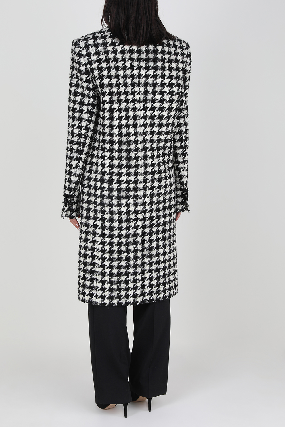 מעיל בעיצוב המותג הצרפתי היוקרתי Balmain העשוי צמר טוויד משובח עם דוגמת פפיטה על זמנית בשחור ולבן. לפריט גזרת סלים ארוכה עם סגירה מכופתרת וזוג כיסים קדמיים בנוסף לכתפיות דומיננטיות למראה מחוייט וסופר אלגנטי. זהו פיס שישדרג כל לוק חורפי בסטייל עוצר נשימה ועל זמני.rn