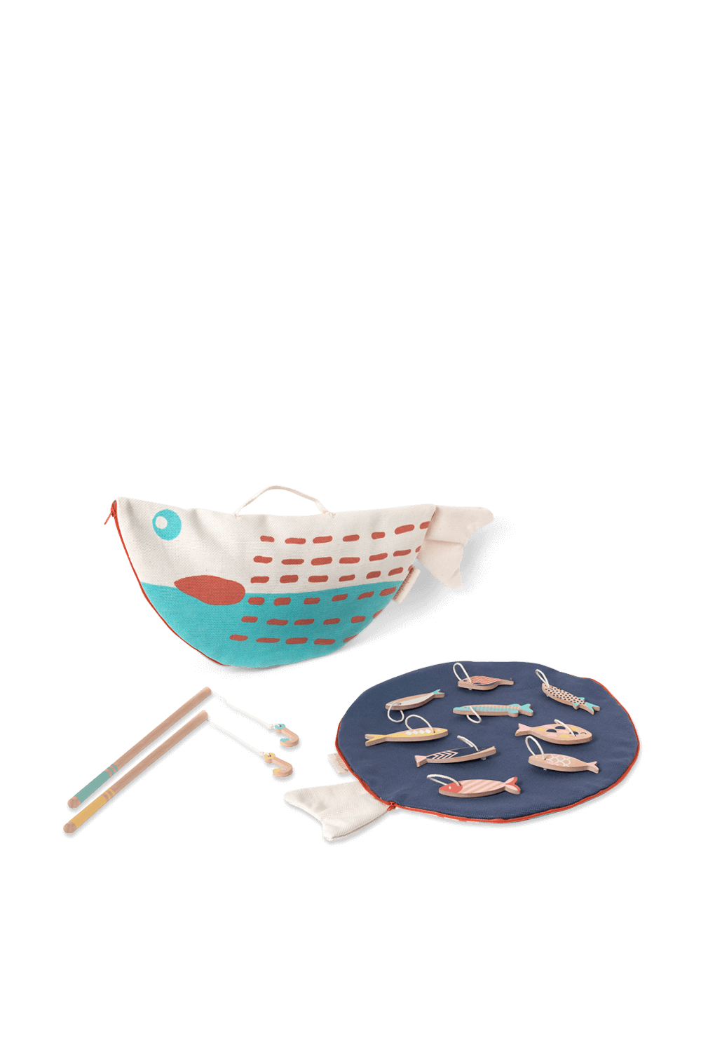 משחק דגים מבית NOBODYNOZ. הדגם עשוי מכותנה אורגנית בצבעי בז' וכחול היכול לשמש גם כקישוט בחדר הילד.