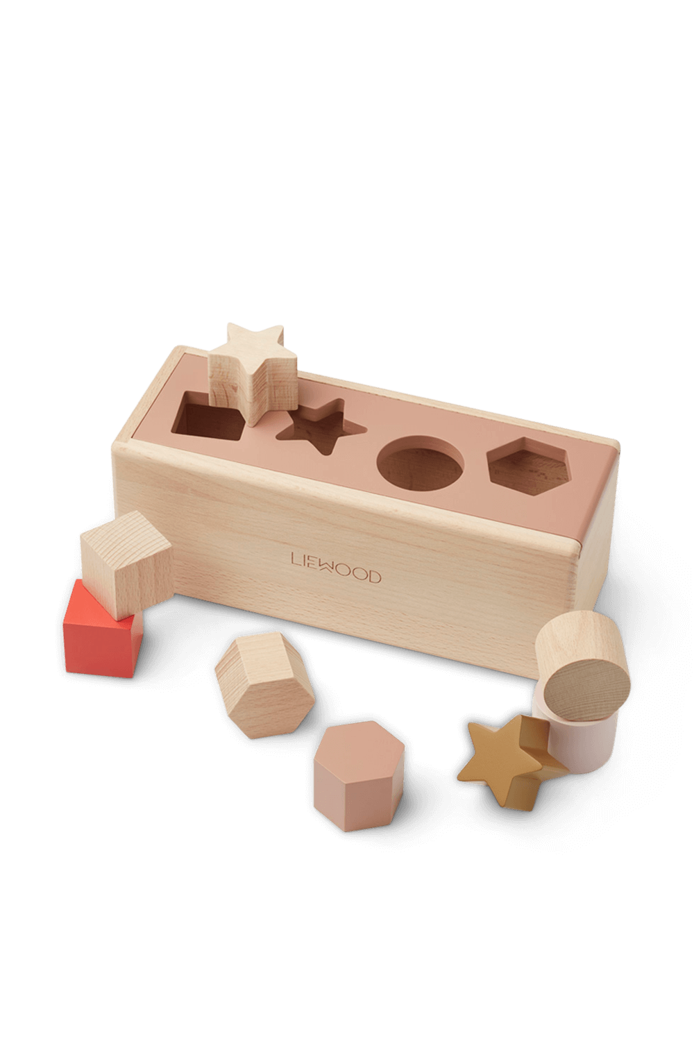 משחק הרכבה מעץ מלא עם צורות גיאומטריות