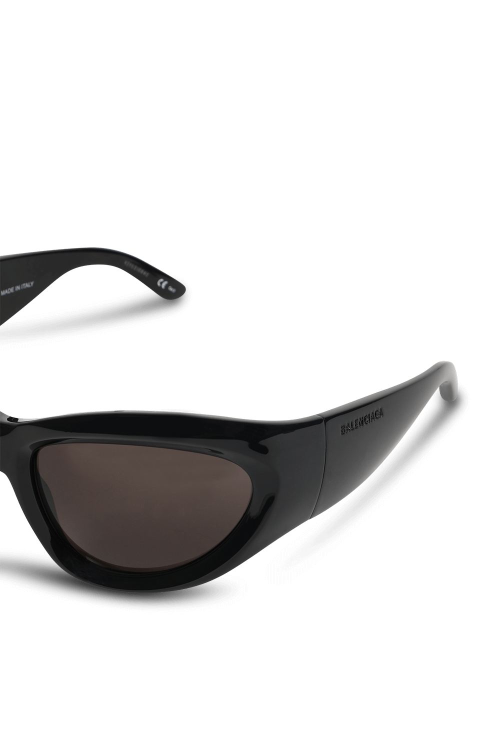 משקפי שמש מבית בלנסיאגה הרותח. זהו דגם Wrap D-Frame בצבע שחור עם עדשות תואמות בעלות הגנת 100% UVA/UVB. מדובר באקססורי לוהט מתוך קולקציית השטיח האדום לקיץ 2022.