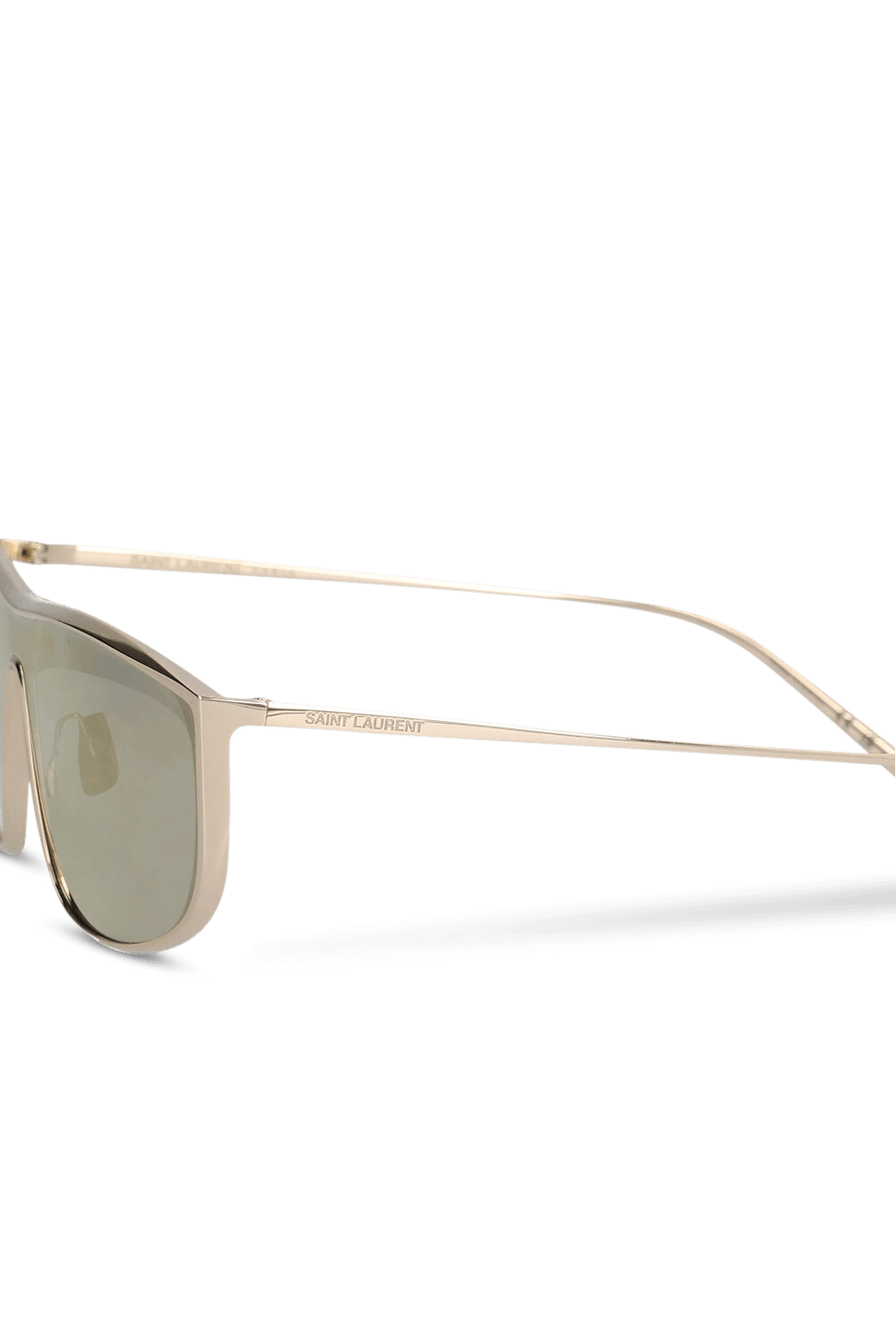משקפי שמש Luna 605 מבית Saint Laurent, בצבע זהוב בחזית ועם עדשה כהה בחלק הפנימי, בשילוב חריטת לוגו המותג במטות.