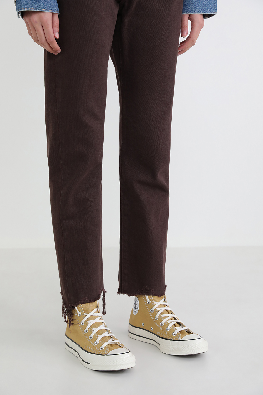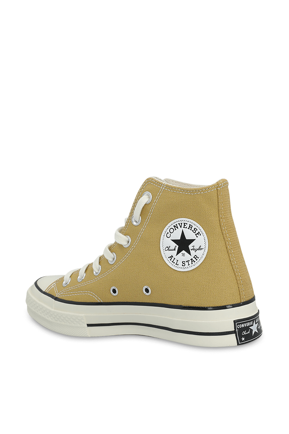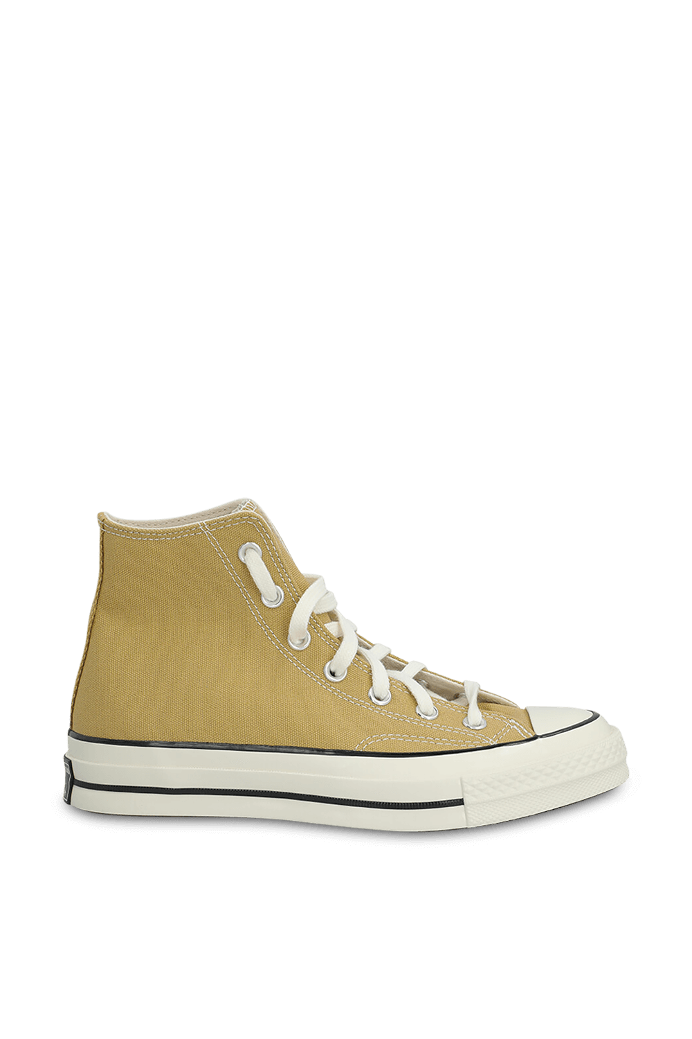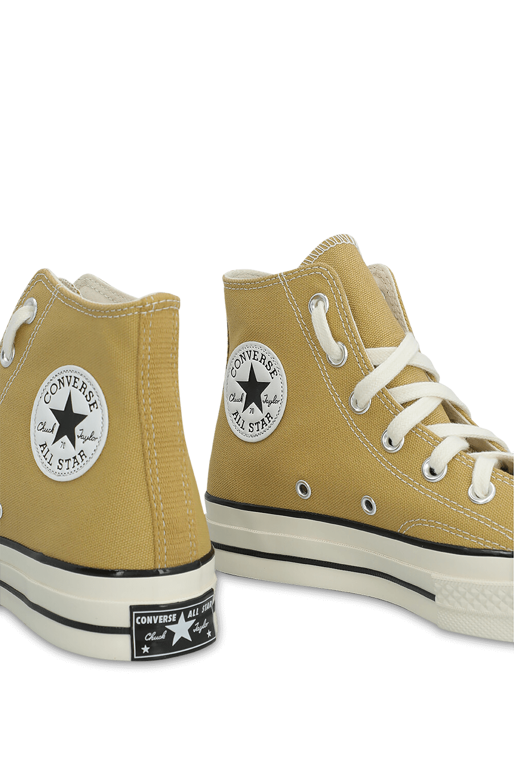 נעלי אולסטאר צ'אק 70 מבית Converse, עשויות תערובת קנבס בצבע צהוב עם סוליית פלטפורמה לבנה.
