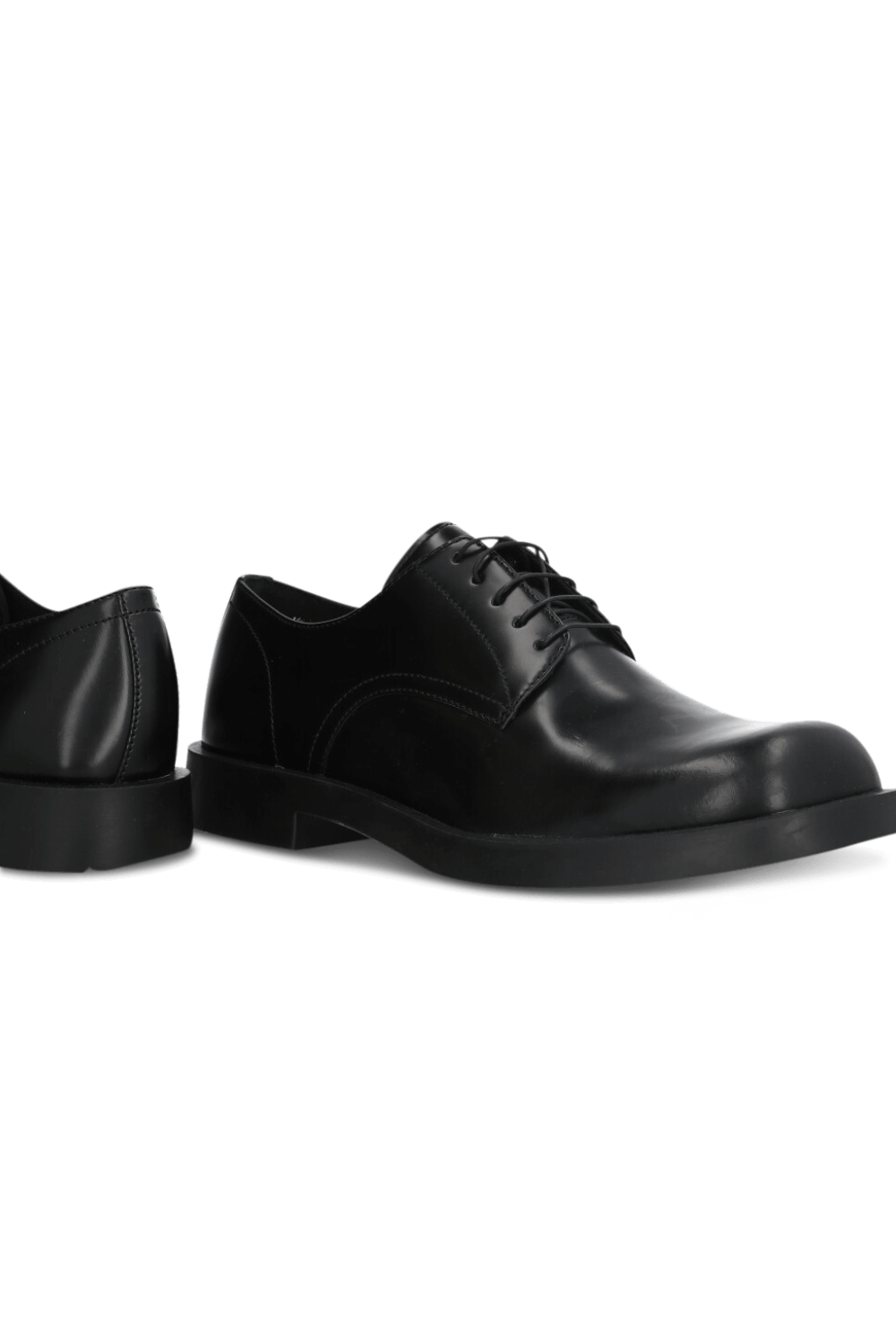 נעלי אוקספורד מבית Camper עשויות עור בצבע שחור, עם סוליית קצף מרופדת בטכנולוגיית המיחזור Ortholite.