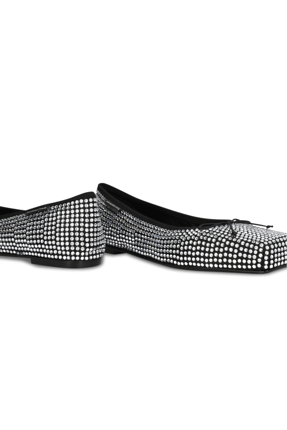 נעלי Billie Flat, מבית Alexander Wang, עשויות עור משובץ באבני קריסטל, ובסיומת מיוחדת בצורת נעל בלט. הסוליה מרופדת ועשויה ויסקוזה ומשי.