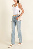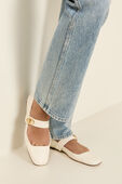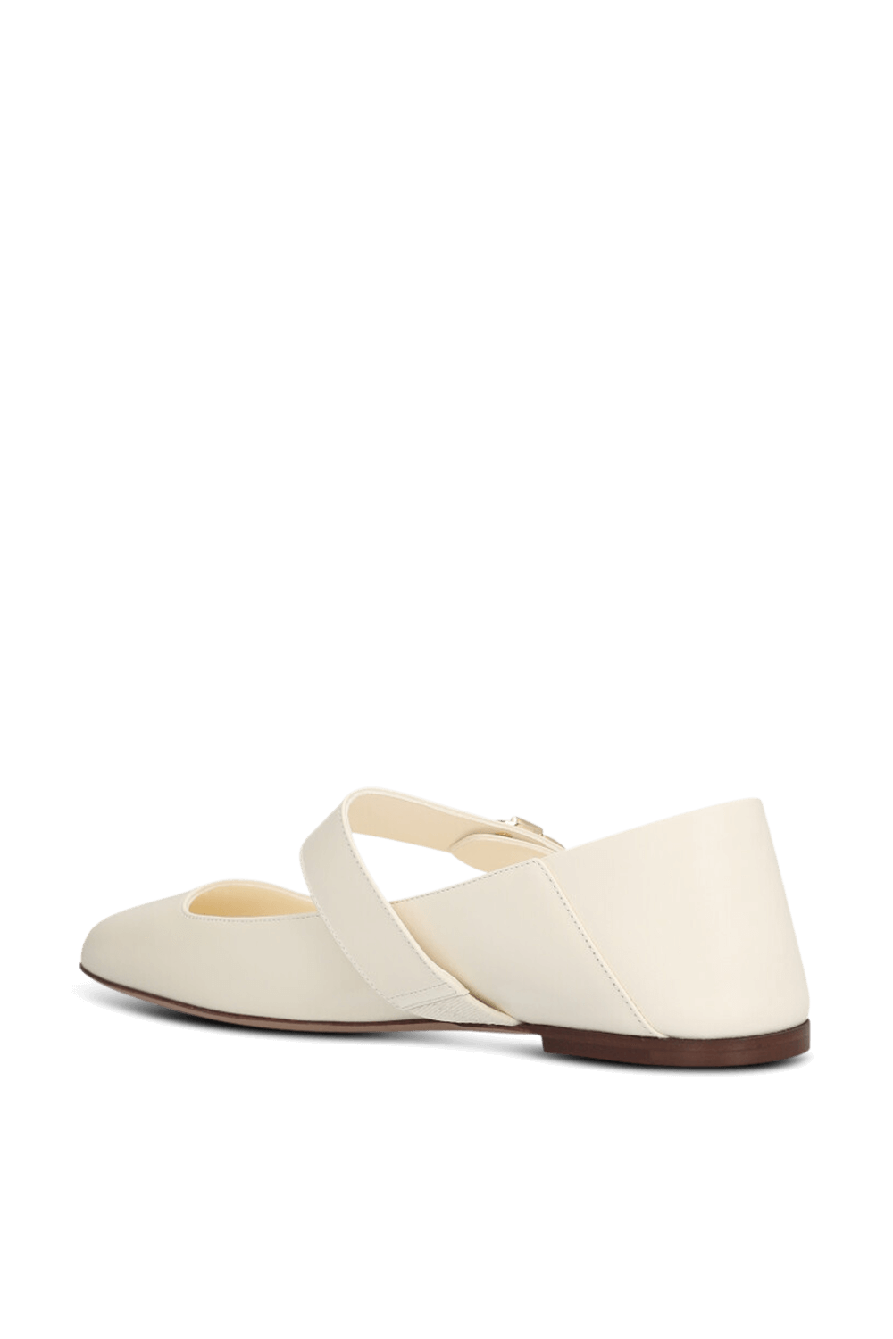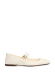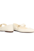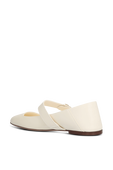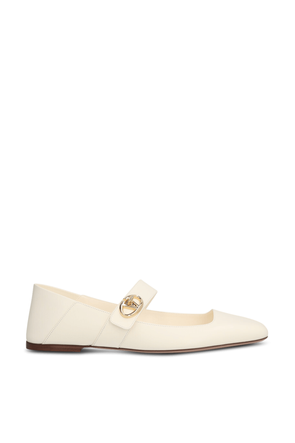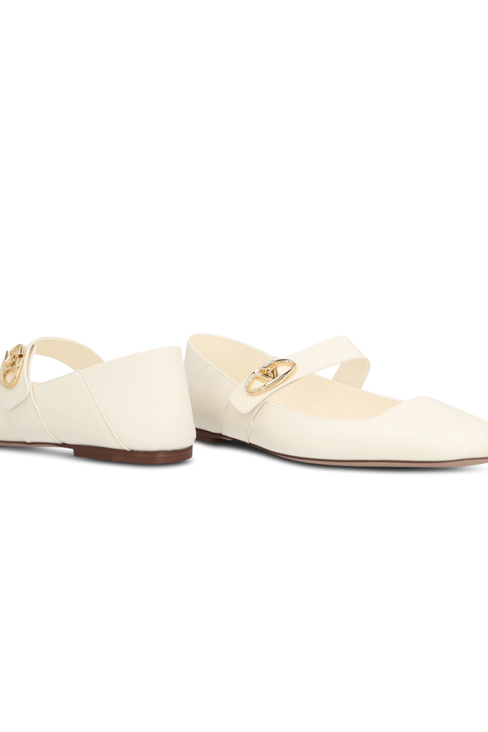נעלי בלרינה מרי ג'יין מבית Valentino, עשויות עור בצבע לבן טבעי עם סוליה מרופדת ונוחה. הרצועה מעט אלסטית בשילוב VLOGO זהוב והיא נסגרת במנעול מסתובב.