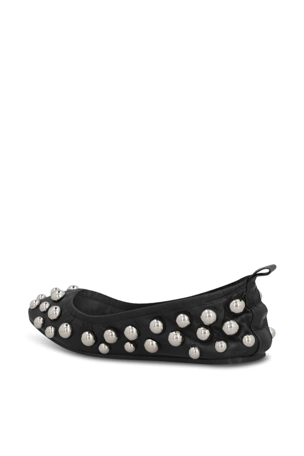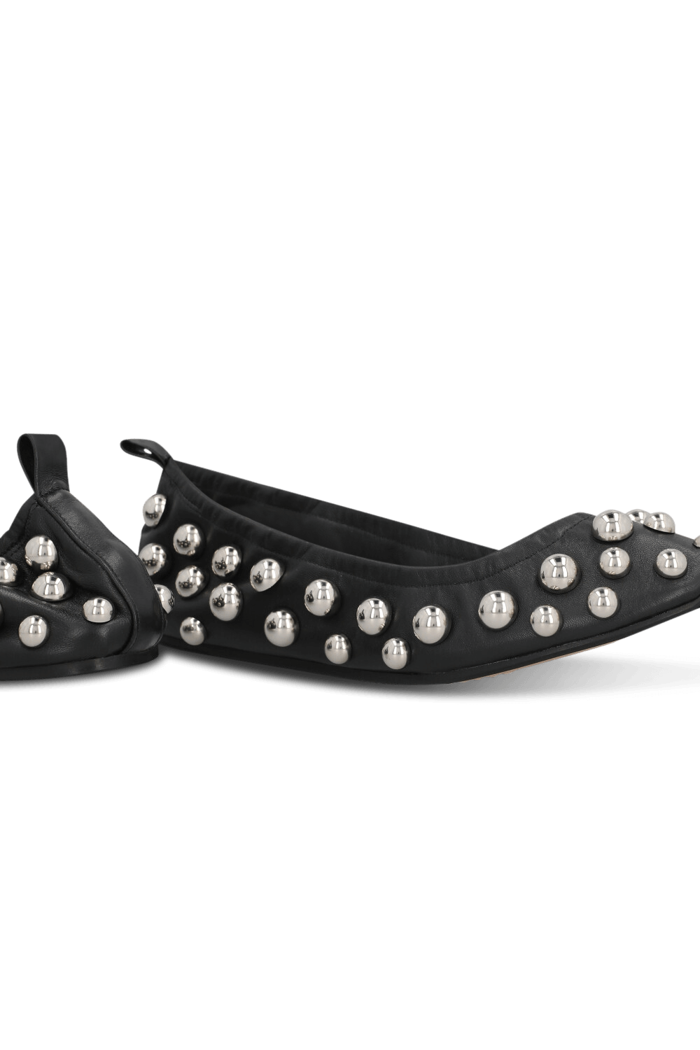 נעלי בלרינה מבית Isabel Marant, עשויות עור בצבע שחור בעיצוב בשיבוץ ניטים במראה מטאלי כסוף כשמסגרת הנעליים אלסטית.