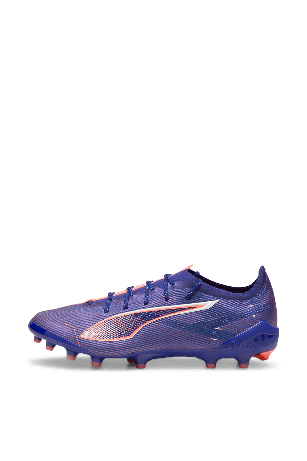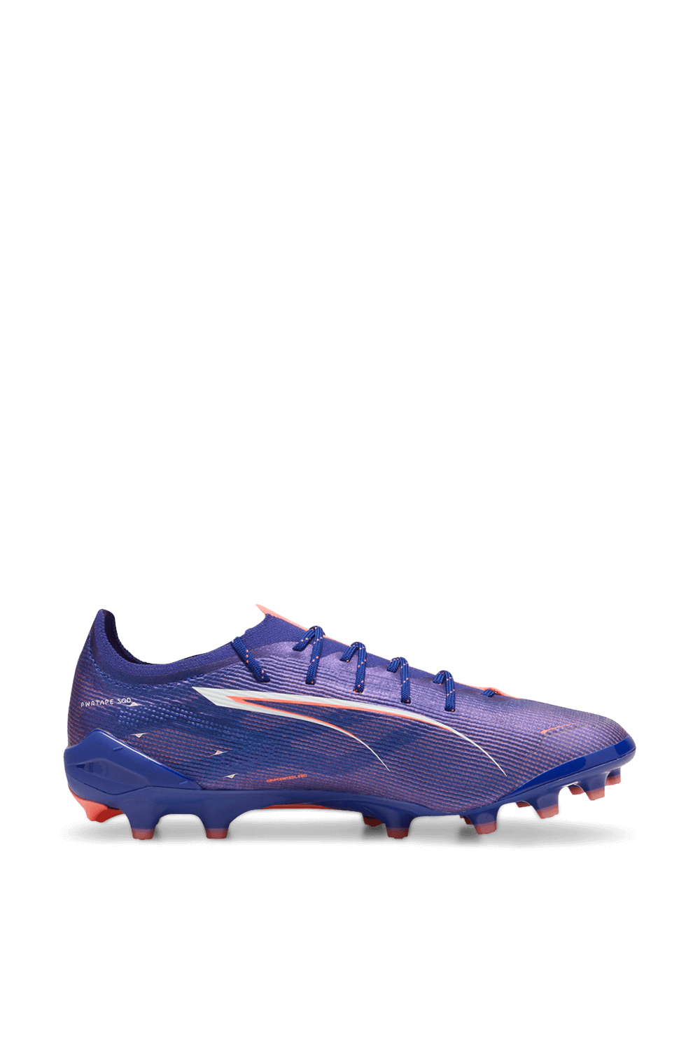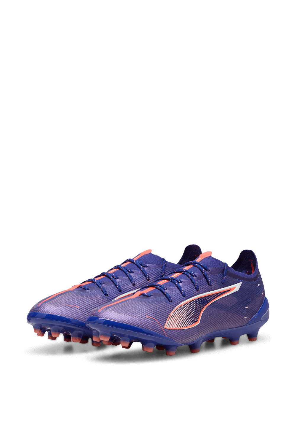 נעלי כדורגל Ultra 5 Ultimate AG מבית Puma, עשויות מתערובת טקסטיל איכותי בצבע סגול עם הדפס. הנעליים קלות משקל ומבטיחות מהירות מקסימלית בזמן המשחק, סוליית הנעליים מעניקה אחיזה והנעה מיטבית על הדשא, המגרש ועל משטחים מוצקים. מסגרת התמיכה PWRTAPE SQD מייצבת את כף הרגל בתוך הנעל מבלי להפריע לזריזות מקסימלית וחופש התנועה.