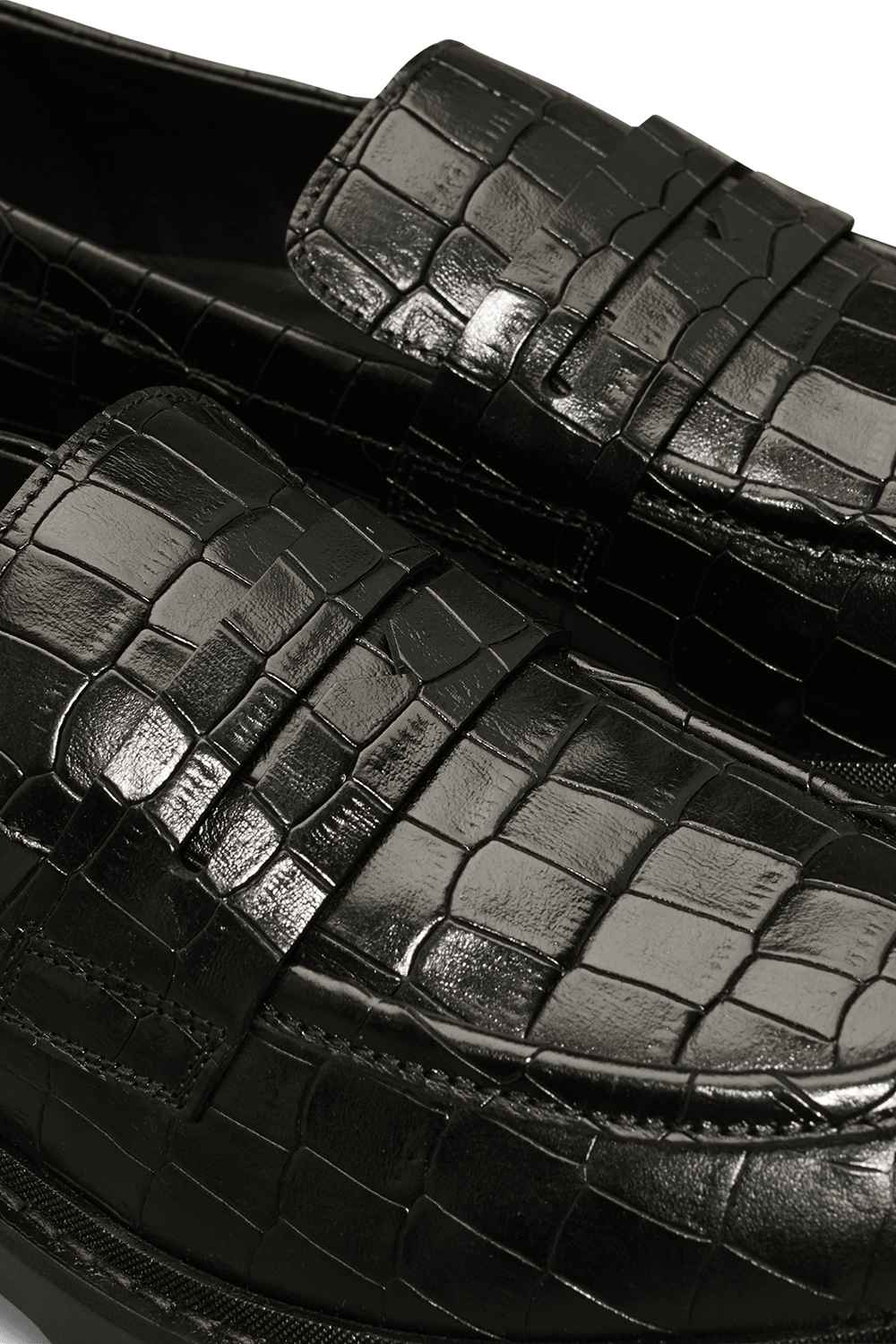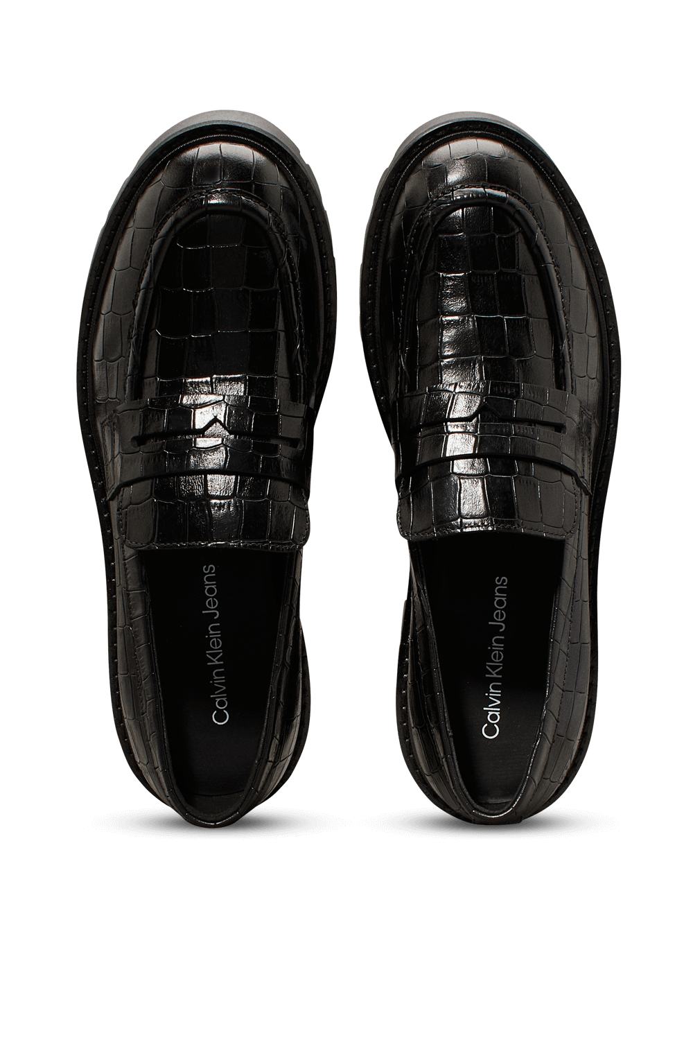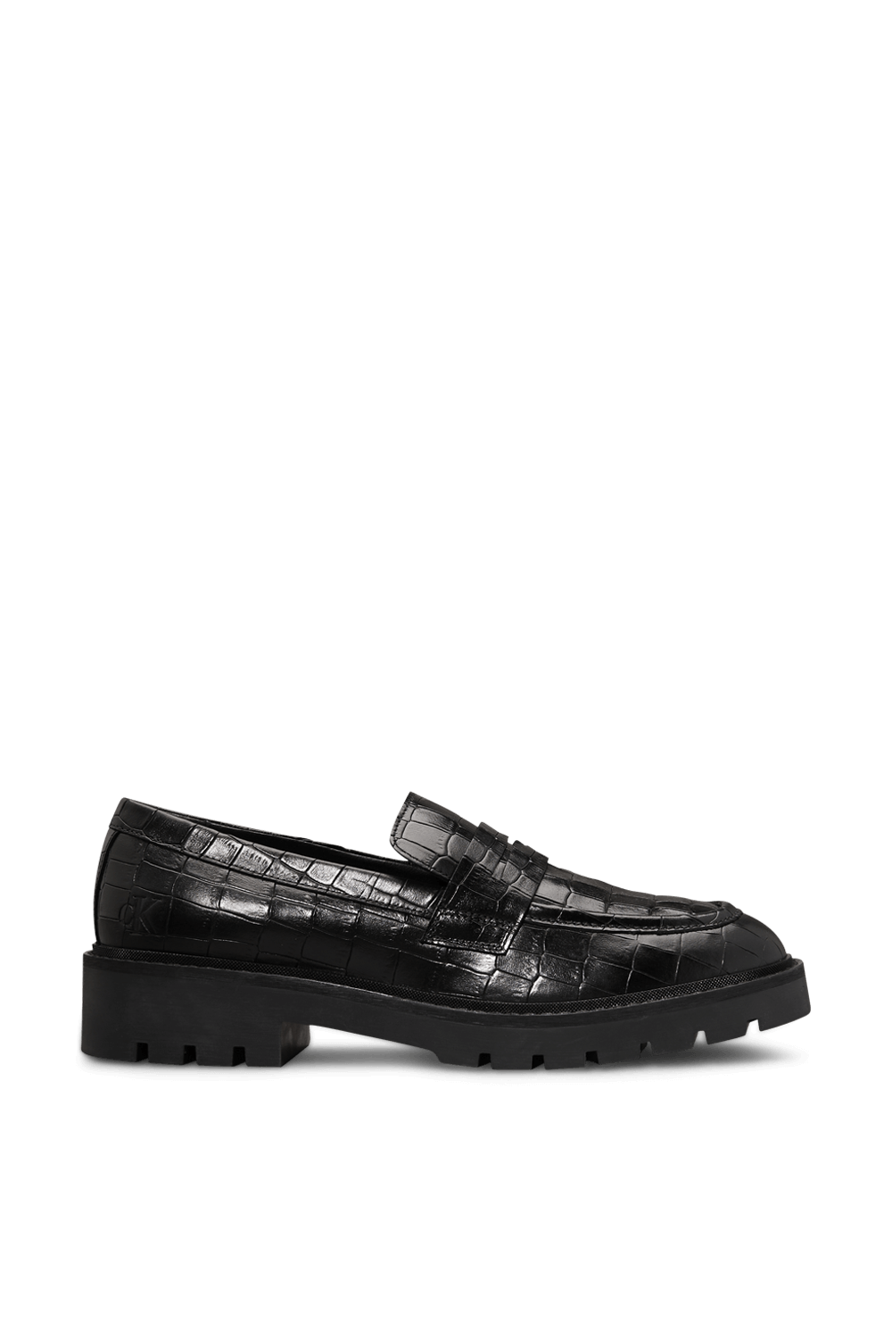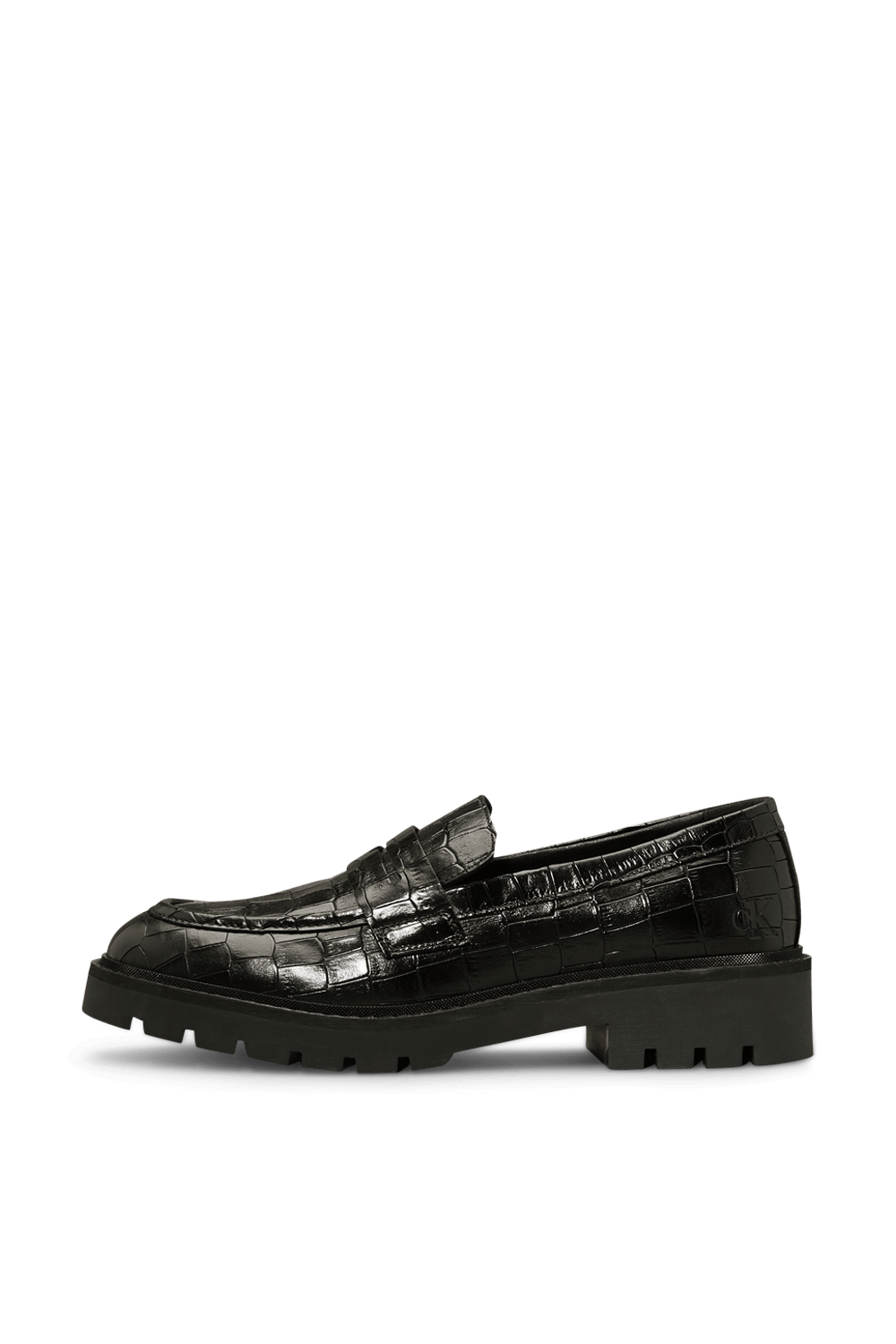 נעלי מוקסינים עם סוליה צ'אנקית מבית Calvin Klein, עשויים עור קרוקו בצבע שחור.