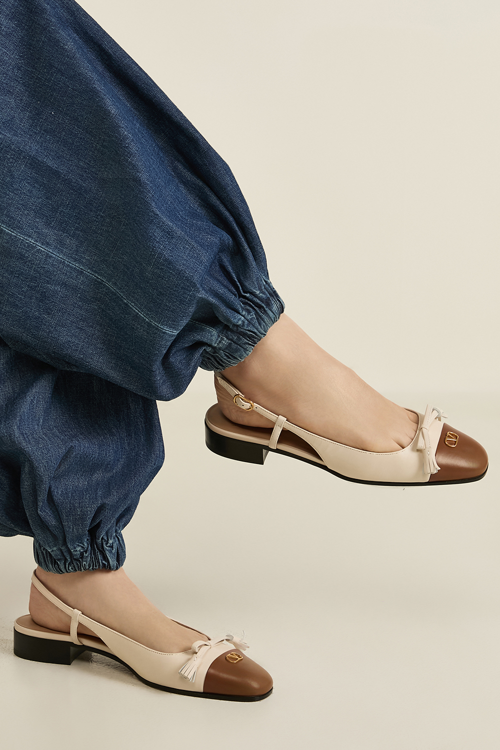 נעלי סלינג בק מבית Valentino, עשויות עור בצבעי חום ולבן.